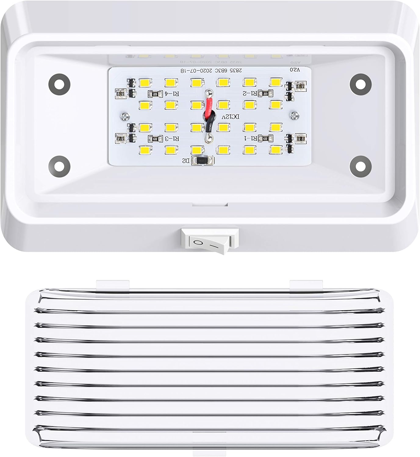 New Leisure LED Rectangle Porch Light W/ Switch 280 LUMEN in Cool White is the replacement for RV, Trailer, Camper, and Boat’s. It arrives with the following; Leisure LED Light Fixture with fixed wires, (2) wiring nuts, (4) Screws to complete installation.Our 6” Leisure LED Porch Light remains energy efficient with 60,000 hour life expectancy while providing superior brightness. Last many times longer than standard light bulbs.