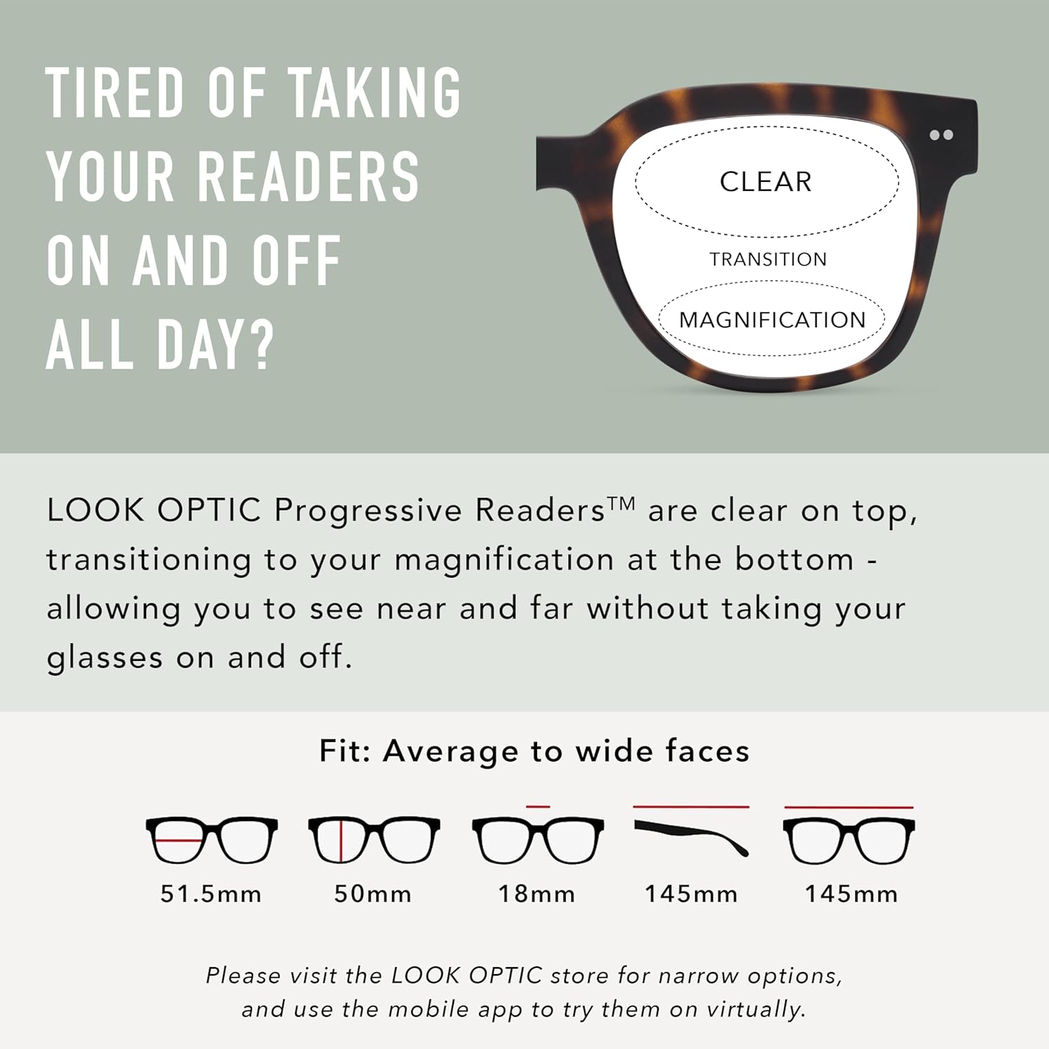 Review: I ordered the progressive readers and non-progressive readers. The non-progressive readers are great, but when I put on the progressive readers I have blurry vision. Not sure if it was a glitch in this particular set or my eyes aren’t meant for progressives…