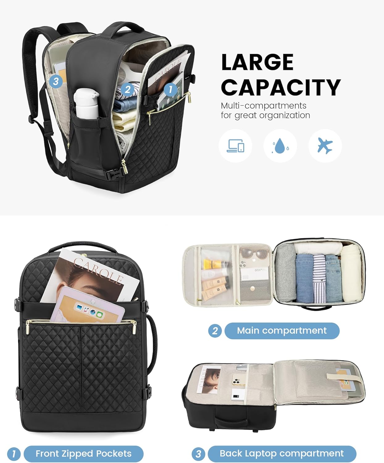 【Stylish & Practical 】: This carry on bag for airplanes is both fashionable and functional, with thick shoulder straps for comfort during long travels. It features convenient side pockets and a secure anti-theft compartment, ideal for flights and layovers. Its diamond quilted design adds a touch of elegance, doubling as a chic laptop backpack for women.