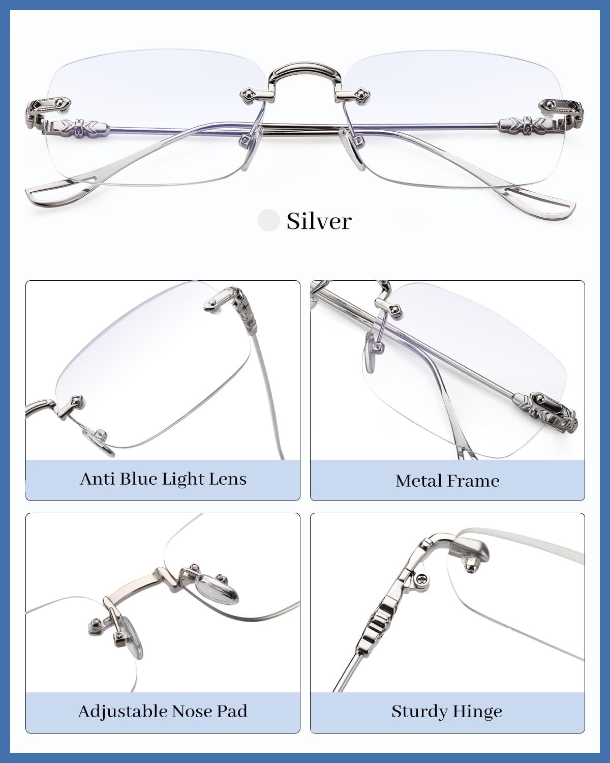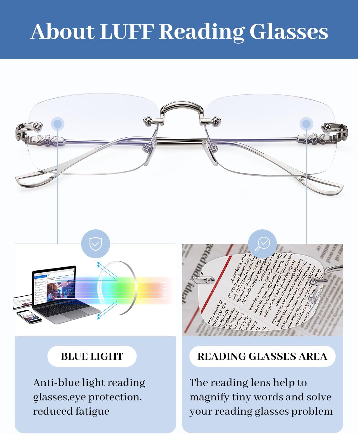 , Health & Household > Vision > Reading Glasses, #LUFF #Reading #Glasses #Men #WomenRimless #Mens #Readers #Blue #Light #Metal #Computer #Ey..,
