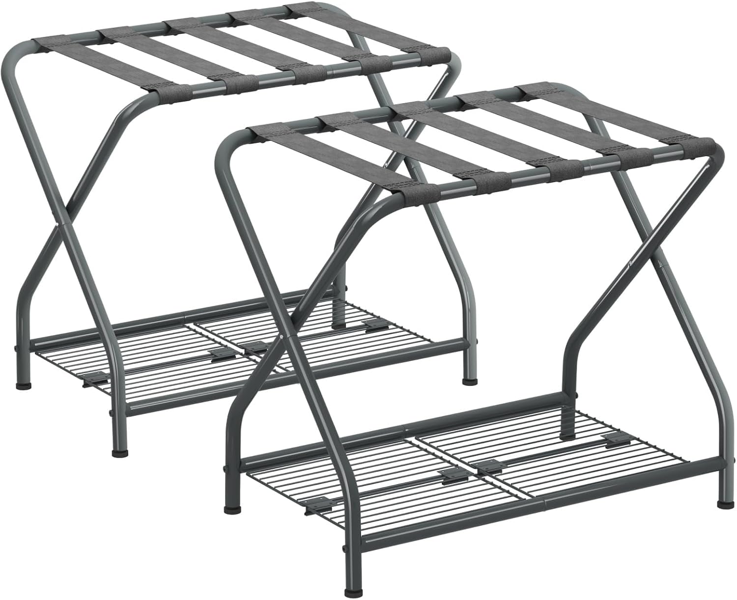 Luggage Rack Pack of 2, Foldable Suitcase Stand with Storage…