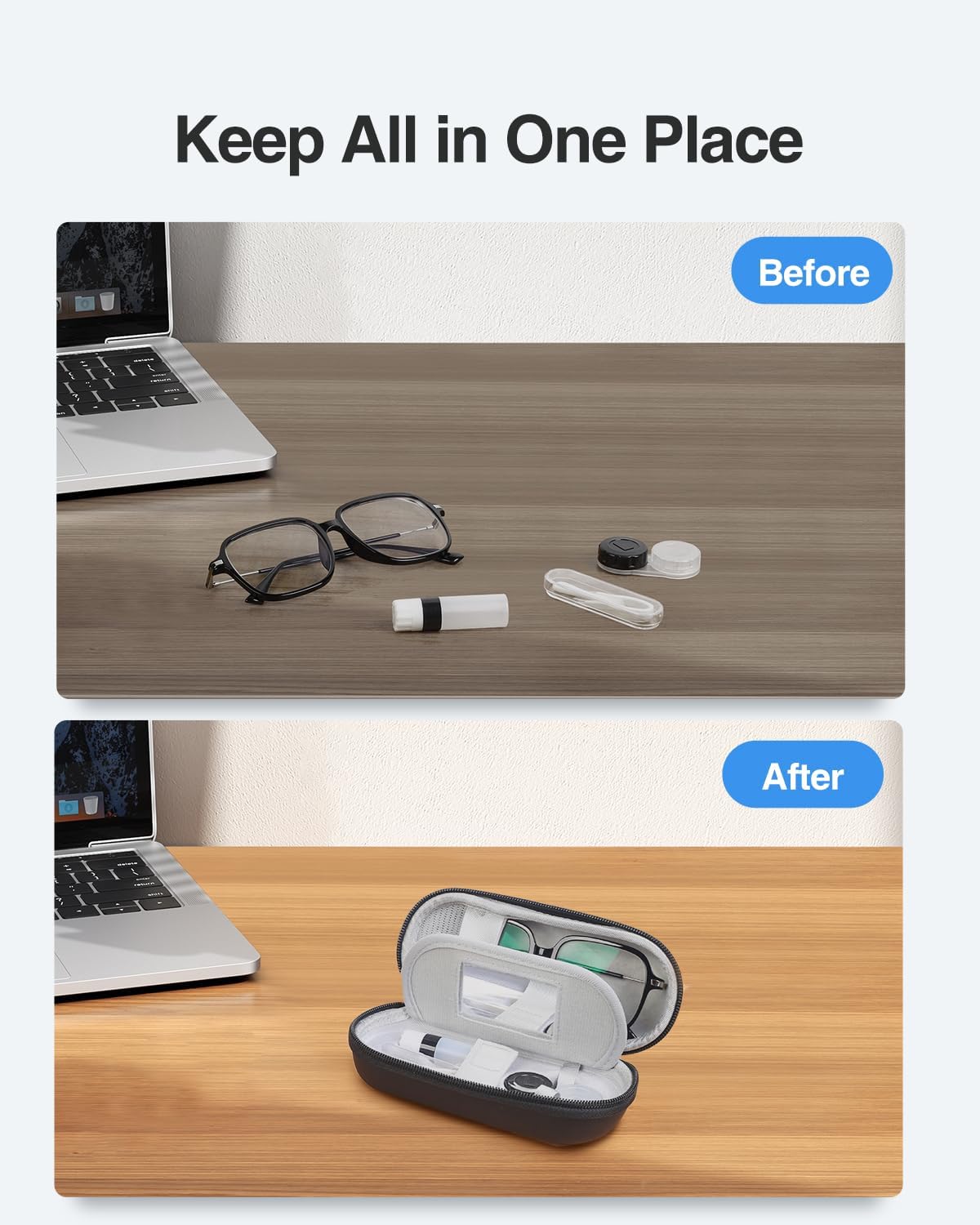 Review: Very nice. Holds my glasses perfectly. Holds contacts good. The design is awesome. The case is very strong. Perfect size. Love it.