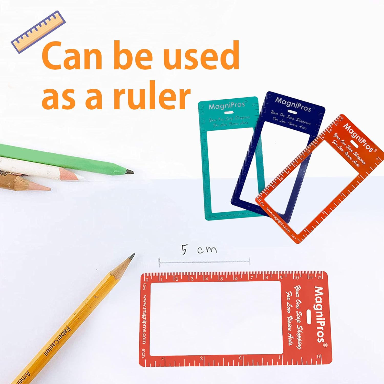 ✅RULER: 4 1/2-inch and 12-centimeter metric rulers are printed along the edges to make these ruler magnifiers great tools for measuring distance on maps as well. Made of elastic plastic, these magnifiers are durable and strong.