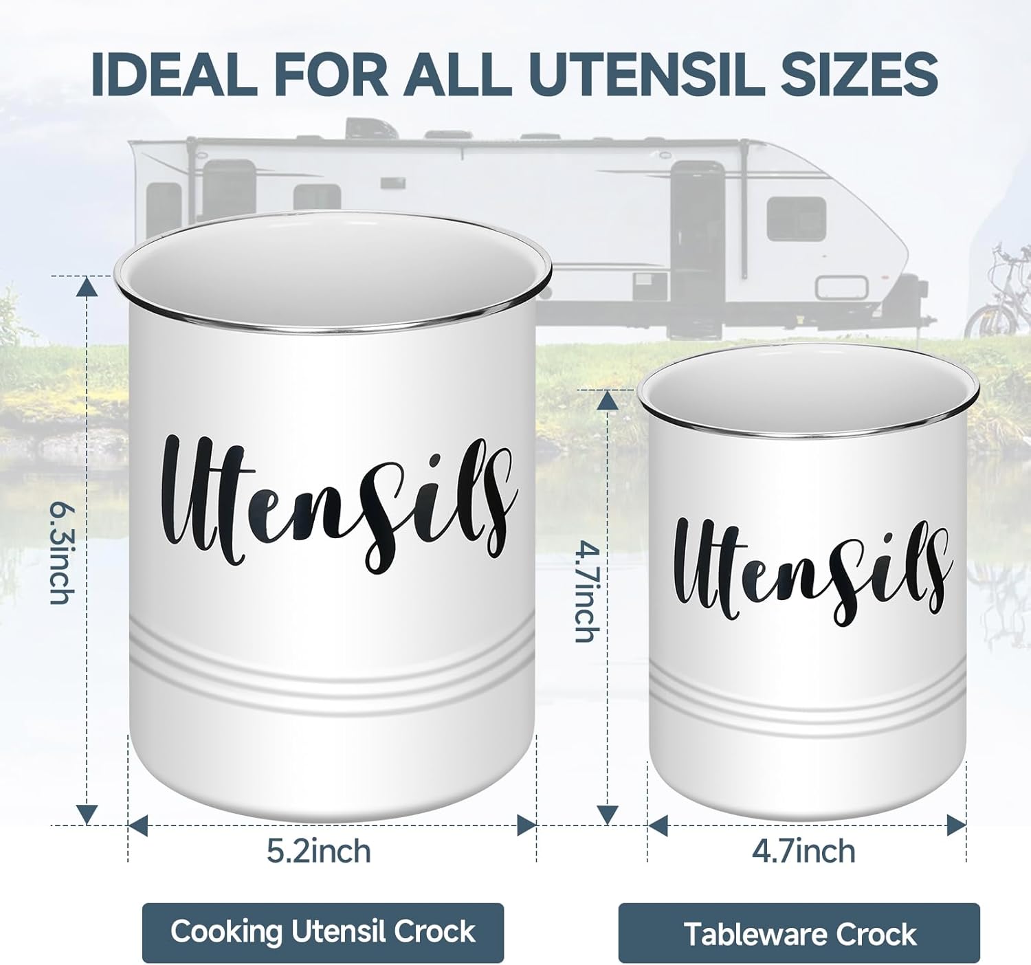 Perfect RV Storage and Organization Solution: Unbox 2 Magnetic RV Utensil Holder – a larger container (6.7" tall, 5.5" diameter) for cooking tools and a smaller one (4.7" tall, 4.7" diameter) ideal for cutlery. Perfect for RV, camper, travel trailers, and boats, offering versatile storage for all your kitchen essentials