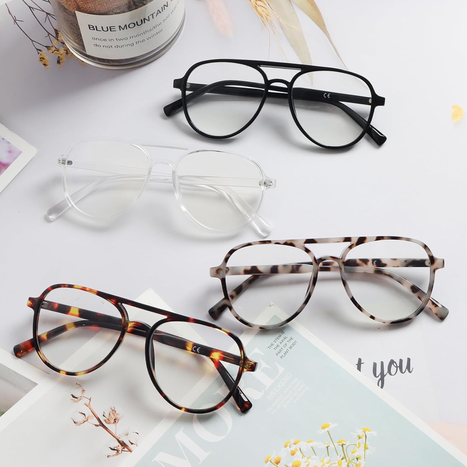 , Health & Household > Vision > Reading Glasses, #MMOWW #Pack #Oversized #Aviator #Reading #Glasses #Women #Men #Retro #Double #Bridge..,