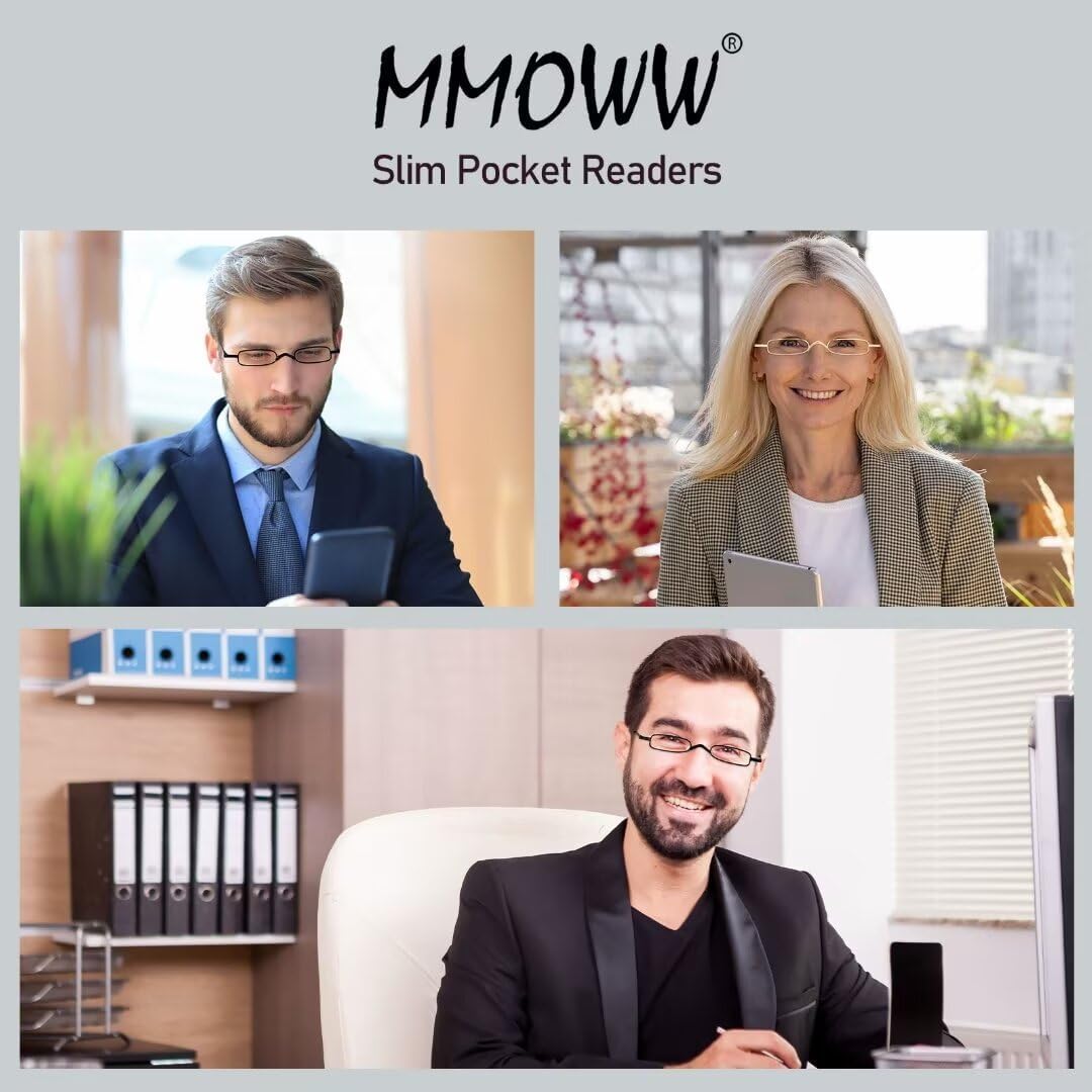 , Health & Household > Vision > Reading Glasses, #MMOWW #Small #Reading #Glasses #Men #Women #Pairs #Slim #Pocket #Readers #Pen #Clip,