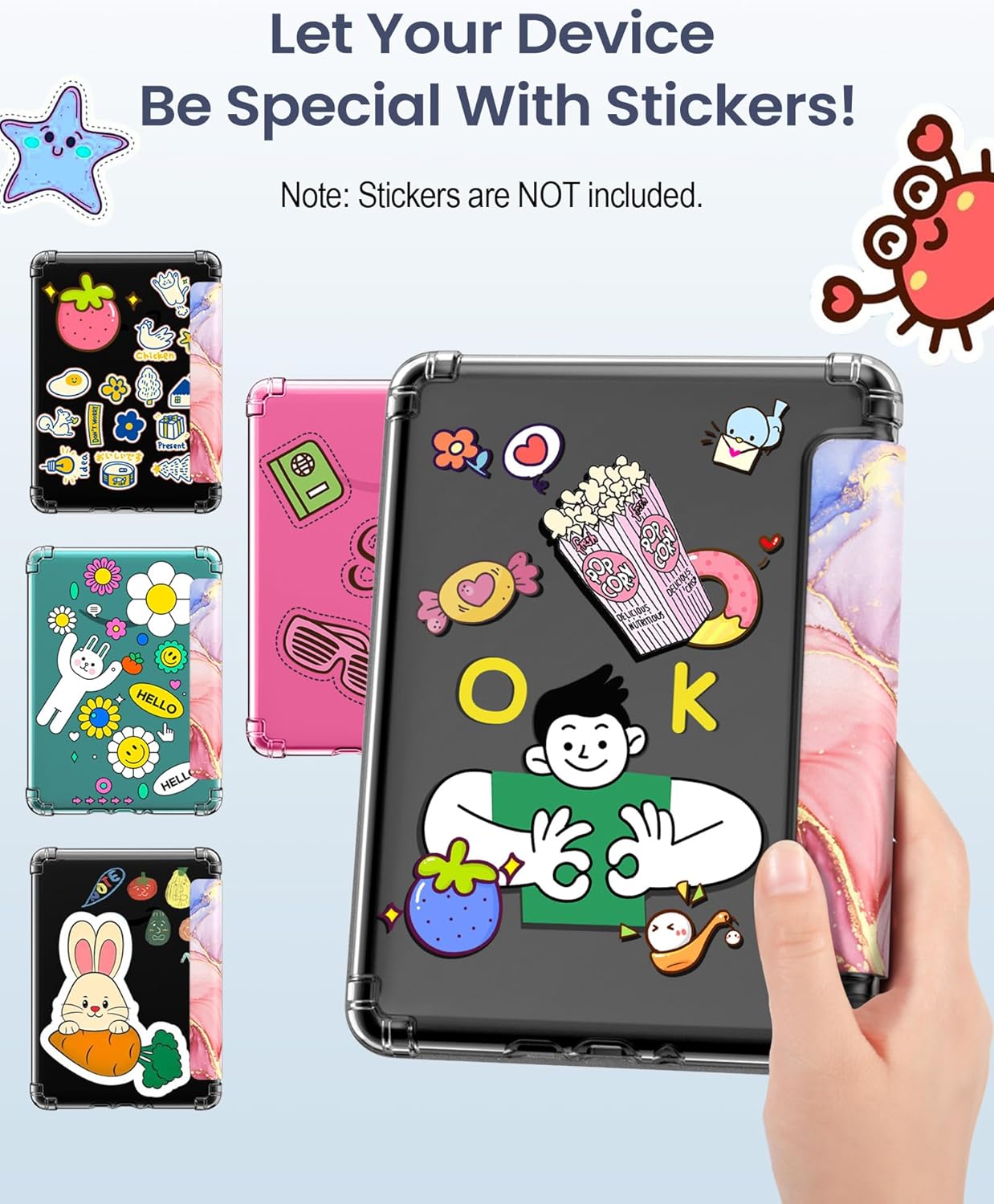 Review: I see in a lot of kindle groups people adding stickers to the back of their kindles and I wanted that but still wanted a front flap to protect my screen. This case is perfect for that and pops off and on super easily for when I want to change my stickers out. It fits perfect on my kindle so I don’t have to worry about it slipping off. It’s super easy to hold when I’m reading and is made so you can also use a page turner. I will definitely purchase more kindle cases from them in the future for the cute designs and the great pricing. If you’re debating it just do it you won’t get a better case for your money.