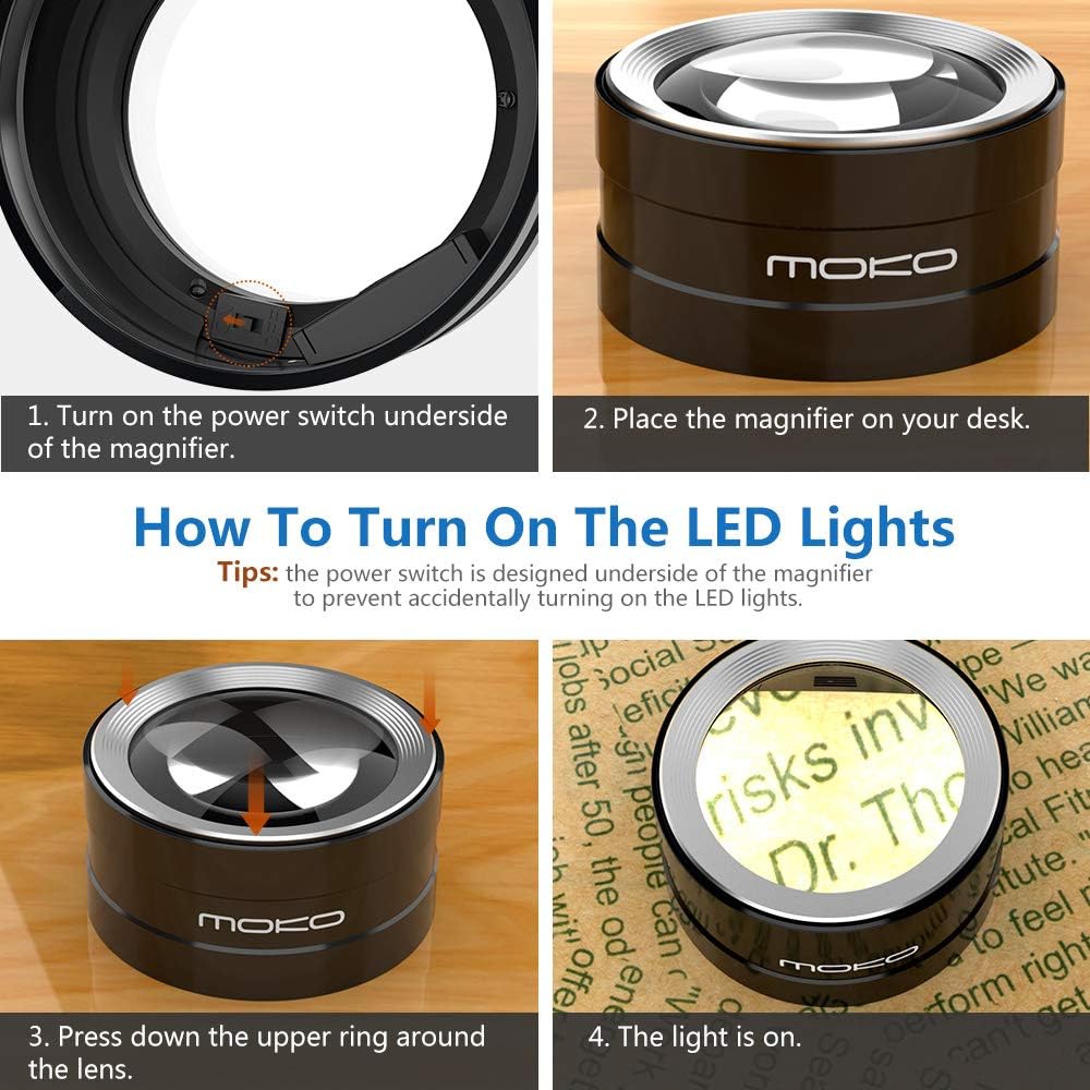 , Health & Household > Medical Supplies & Equipment > Mobility & Daily Living Aids > Visual Impairment Aids > Magnifiers, #MoKo #LED #Lighted #Desktop #Magnifier #Dome #Magnification #Magnifying #Glass,