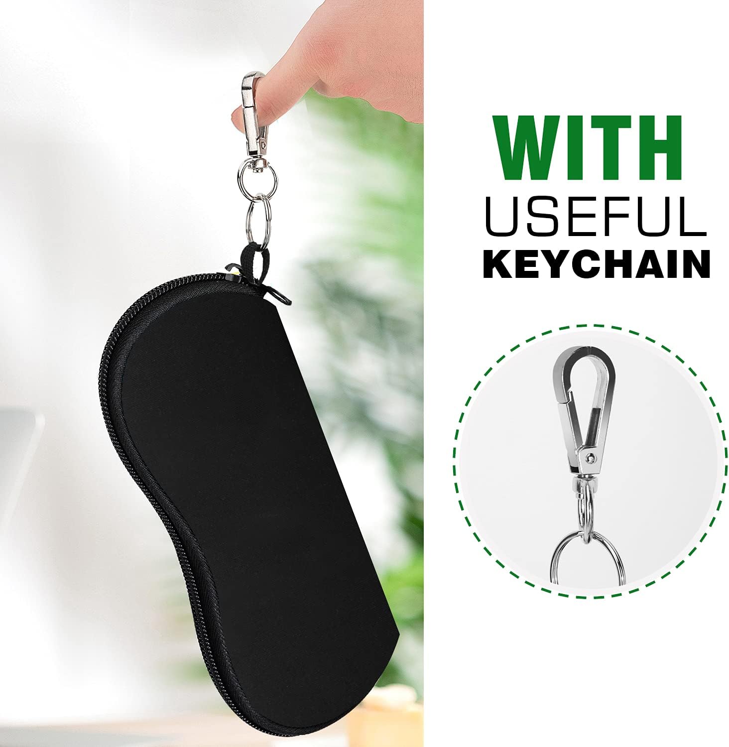 Review: Case size is perfect even for bulky sunglasses; zipper is good quality and easy to open and close; hook is strong and easy to hook to purse. Recommend for sure.