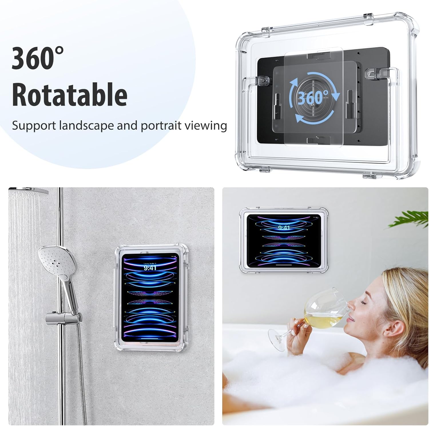 Review: Got this for the shower/bathroom for our iPad & it works for phones or other tablets as well!Very well made and it came with two different adhesive attachments so you can hang it in two places. I’ve currently got one in each bathroom so it can be moved.Sound quality and picture quality through the case are great 😁 & the stand keeps it upright even when not using the added attachment for hanging.