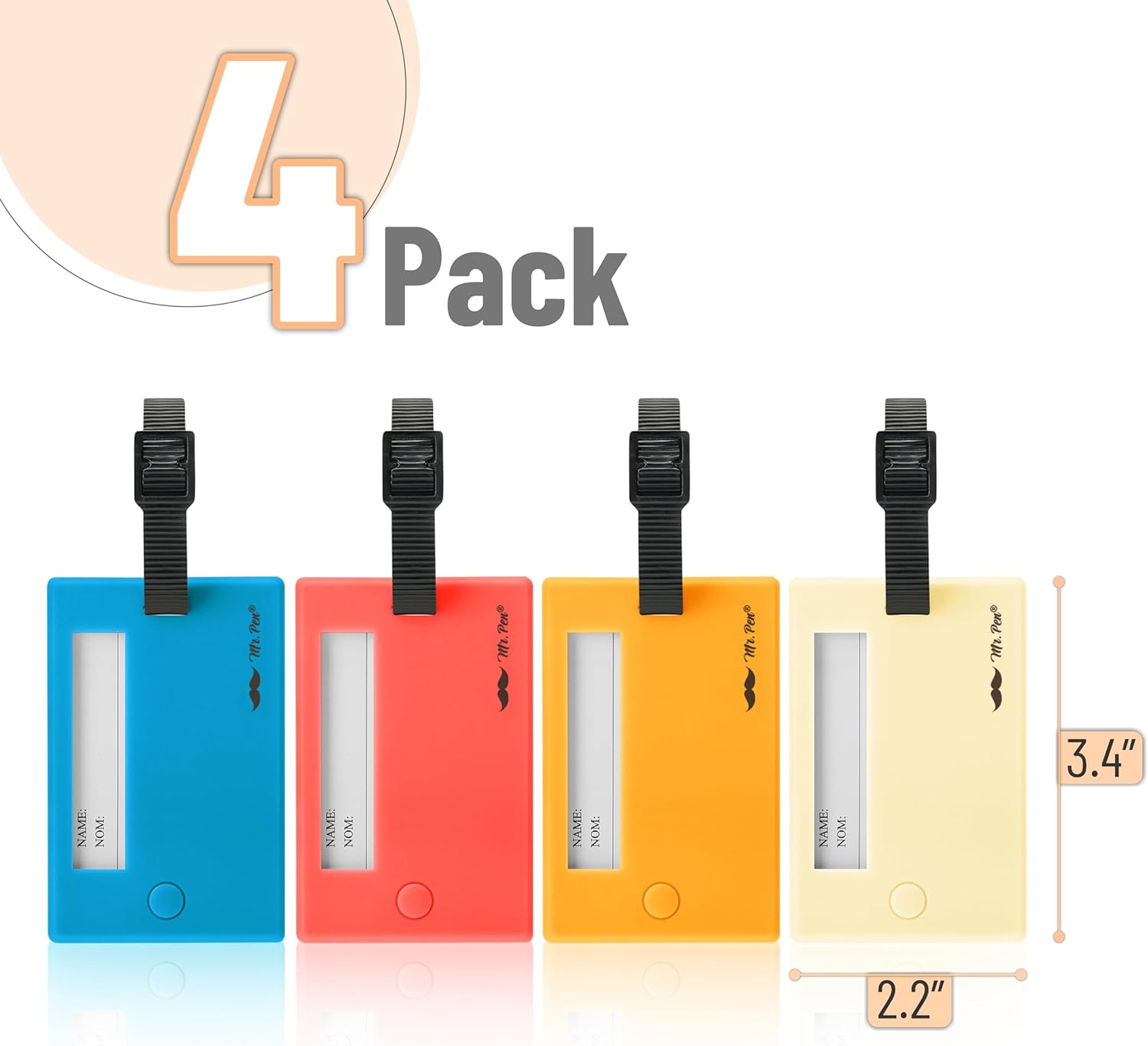Mr. Pen Luggage Tags, 4 Pack, Colorful, Rectangular Plastic,…