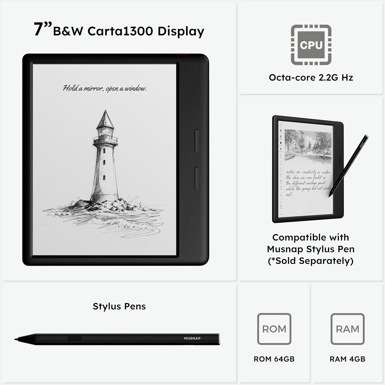 , Electronics > eBook Readers & Accessories > eBook Readers, #Musnap #Ocean #64GB4GB #7eBook #Reader #Supports #Handwriting #7EInk #Paper #Tablet,