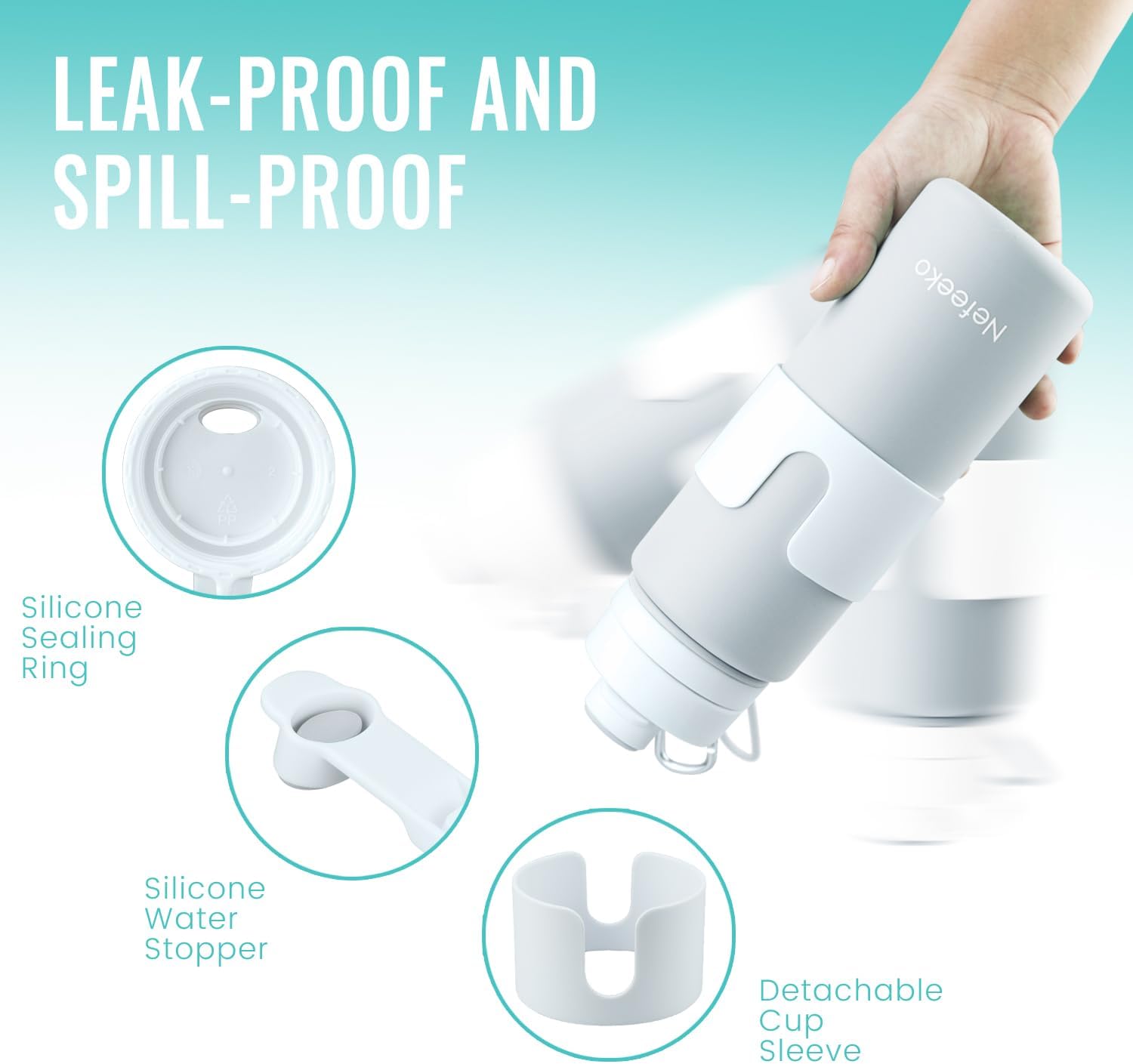 Nefeeko Collapsible Water Bottle, BPA Free 26oz Foldable Wat…