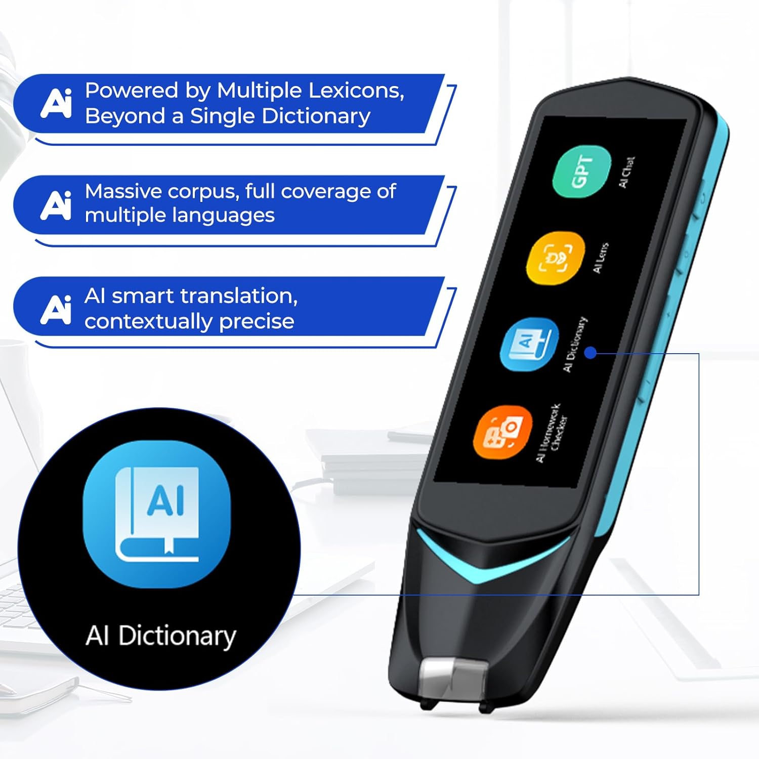 Review: First thing to do: go into settings, cancel automatic shutdown, and select permanent. Otherwise, the experience will be greatly affected. Every time it is not used for a long period of time, it will automatically shut down, and will be turned on again the next time it is used. The startup process is very slow, so it will greatly affect the experience. Even if it never shuts down, it only loses about 5% of the battery every day, which is still acceptable.It’s a bit big compared to my phone. It comes with a protective bag, and even helps you apply a screen protector, which is really thoughtful. Its resolution is neither too high nor too low. No pixels can be seen from a normal distance, but it is still pretty good. The viewing angle is also very strong, and the display effect will not be affected by going up, down, left, or right.Then to the most important question, function: The main reason why I bought it is that it can translate offline. Even if there is no network, it can translate text and support pronunciation. So even if your phone doesn’t have a network, it can still help you solve some translation problems. But the most regrettable thing is that in an environment without a network, it can only support the translation of text detected by the photometer. Input text translation, voice translation, photo translation, AI assistant, smart recording, etc. all require the Internet. If I need the Internet, why should I use it instead of my mobile phone?Secondly, its detection head cannot detect anywhere. It can easily detect the text on the display. Also, if the text is too large, it cannot detect it, and the sensitivity is also a bit poor. But it can scan text on a curved bottle, not necessarily text on a flat surface.Advantages: It comes with a rechargeable battery that can be charged using type-C, and it comes with a built-in speaker that can produce sound. Supports taking pictures (but the pixels are a bit low). I think it is a good tool for learning English for the elderly.