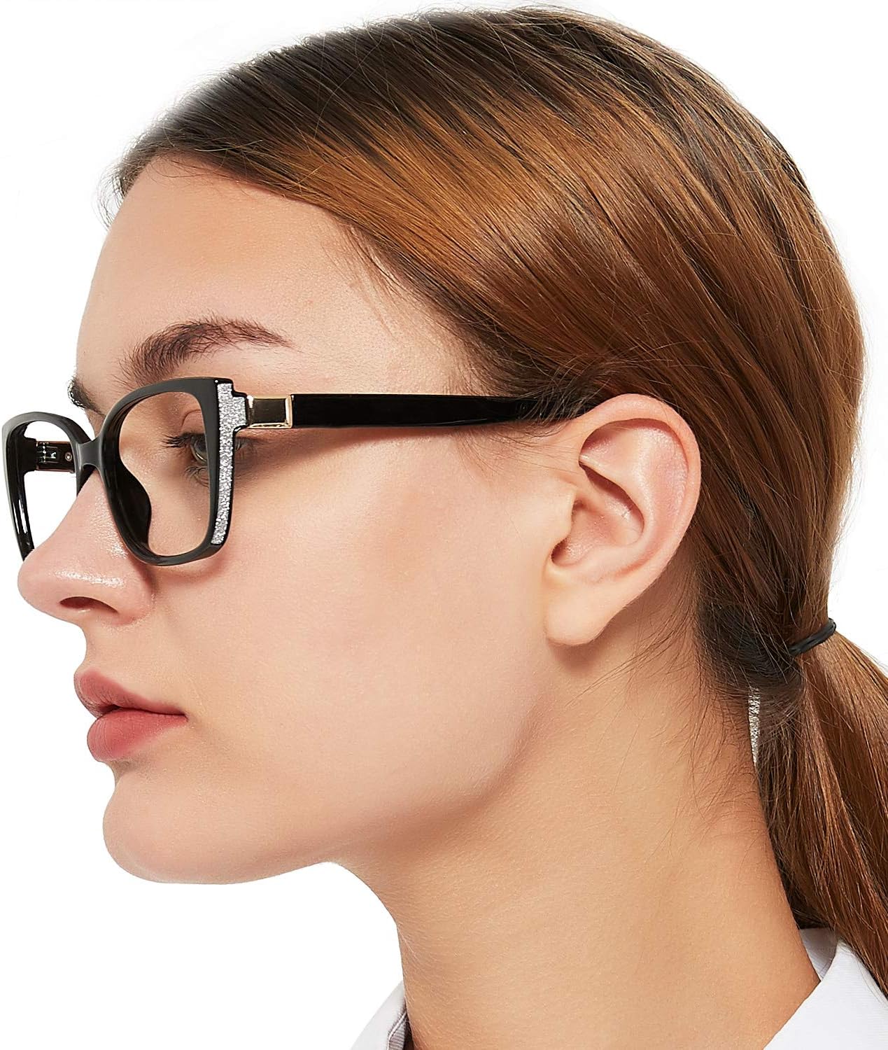 Review: These glasses work okay but they are thick and not stylish as promoted. The frames have a gaudy looking set of rhinestones on them which make the glasses look like they were purchased in a third world country.Due to the incorrect promotion and low quality I am giving this product a 3.