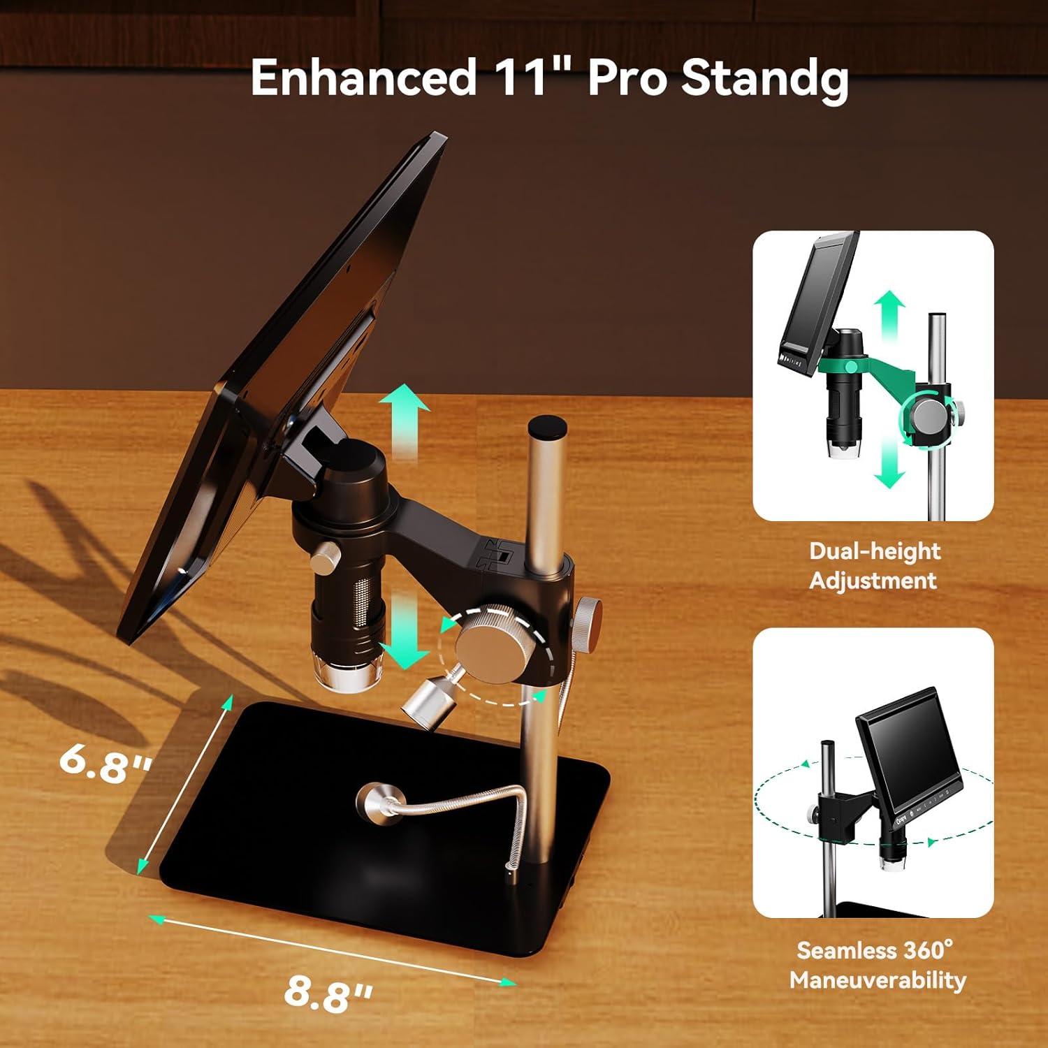 Review: This thing is pretty awesome. Opted for the adjustable desk clamp arm so it had more versatility. Focus knob works great and gets you in REALLY close to your work. I had a connector on a laptop that needed repair and is only about 2-3mm across. This zoomed in to show it about an inch across on the screen with excellent detail. Honestly, surprised it works as well as it does, so I highly recommend this unit. Build quality and components are all excellent for this price point. Really cool device for repair work or curious exploration. Homeschooling or science teaching would be a whole new level of awesome with this device!
