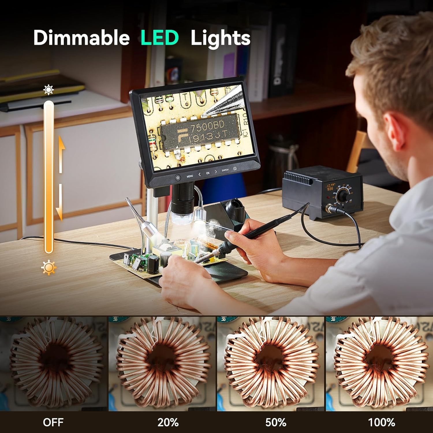 Review: This microscope is perfect in every way except one major flaw. The zoom amount is about 1/4 of what it should be.Picture quality is great.Features are greatFocus is greatZoom is atrocious. Bad to the point of making the device aggravating to use.Correct this feature and it’s a perfect 5.
