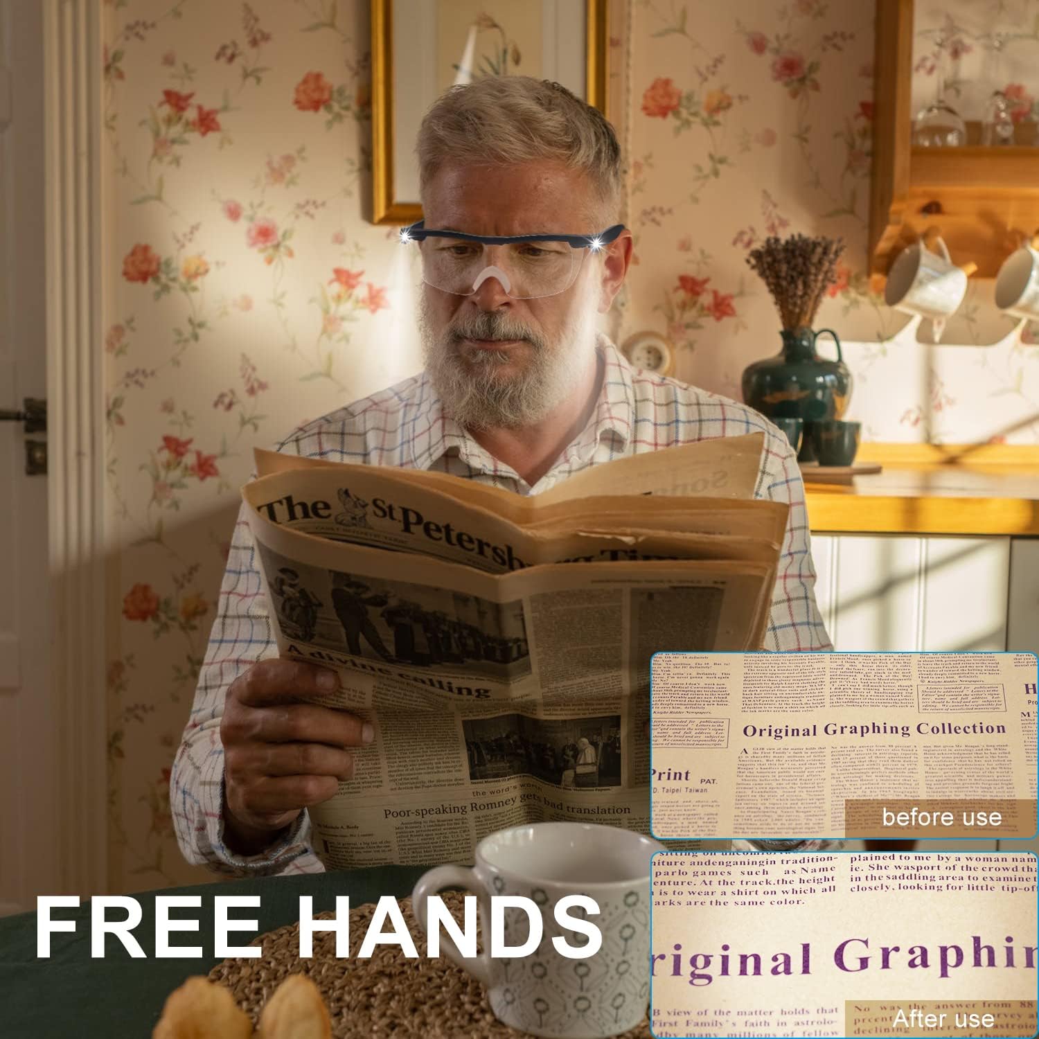 OKH LED Magnifying Glasses attach 160%-200% magnification lenses to the eyeglass frame, plus the LED light, provide you brighter vision, will freeing your hands to do more while you are looking up phone numbers, looking at photos, reading bottle labels, checking…
