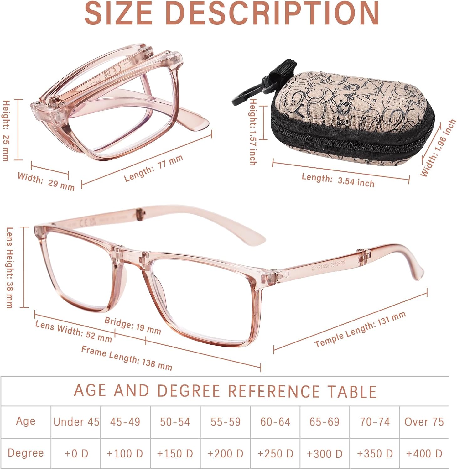 Review: I’ve bought multiple folding readers prior to buying these and have always been disappointed. The others always sat weird or crooked on my face. These readers are perfect! They look like normal glasses. They fold up easy and fit perfectly back in the case. Everything looks super clear and crisp when reading. The case is a hard case which is nice to keep them from getting damaged or bent. The case also has a clip on it so you you can clip it to the inside or outside of your purse or backpack. One suggestion about unfolding them…just be gentle when straightening the nose piece. It’s not that they are fragile, but I can see if someone were to try and straighten it too forcibly, it could break them. I haven’t had any issues and I’ve been using them daily for the last 3 months. I really feel like these will hold up for a long time. If/when they do break, I’ll replace with this exact same brand. Love them!