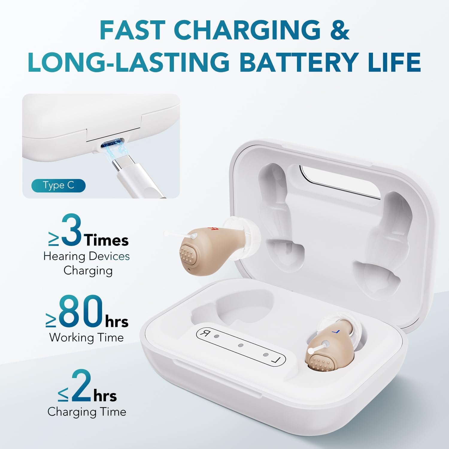 Review: Why did you pick this product vs others?:These rechargeable OTC hearing aids deliver impressive sound amplification with minimal fuss. The auto on/off feature powers the devices as soon as they’re in your ears, and the long-lasting battery easily recharges overnight. I noticed significantly reduced background noise thanks to the built-in noise-cancelling technology—conversations are crisp and clear even in busy environments. The ergonomic design fits comfortably for all-day wear, and the simple controls make volume adjustment straightforward. A wonderful solution for seniors (and anyone) seeking better hearing without the hassle of traditional aids!