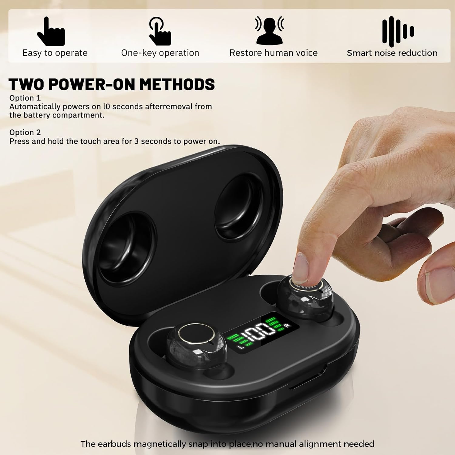 Review: i have tried multiple times to get the Bluetooth functionality that the description says this has (BT 5.3), but none of my devices see any attempt to pair. Rufus says it should attempt to pair when it comes out of the charging case, but nothing happens. The generic, multi-language instruction manual is clear about settings, but doesn’t mention Bluetooth, so I suspect that the description may be in error.The 10-second delay between taking the buds from the case and turning on is convenient, but if you take them out without turning them off, the feedback whistle is really loud. They have great amplification, but it’s rather broad spectrum, making some things obnoxiously loud, like crinkling paper, or the hum of an air conditioner or fan. Voices are loud and clear, but the constant background is also loud, and I worry a bit about it.Edit: They have removed Bluetooth from the description now.
