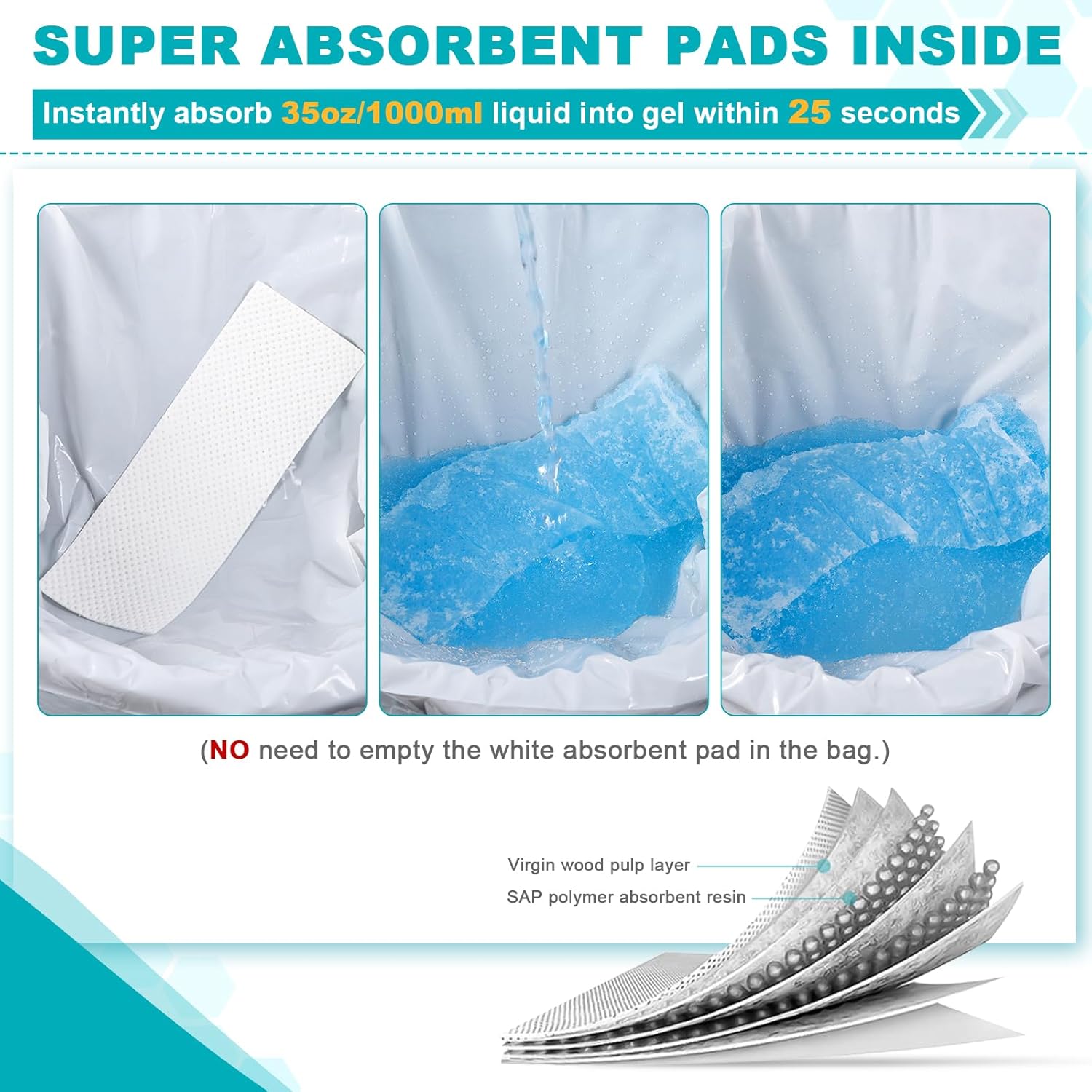 Instantly Absorb Liquid within 25 Seconds: Our disposal urine bag is equipped with SAP water-absorbing polymer substance that can absorb urine, vomit, or other liquid waste and turns it into odorless, spill-proof gel. And it can instantly absorb the liquid into gel within 25 seconds