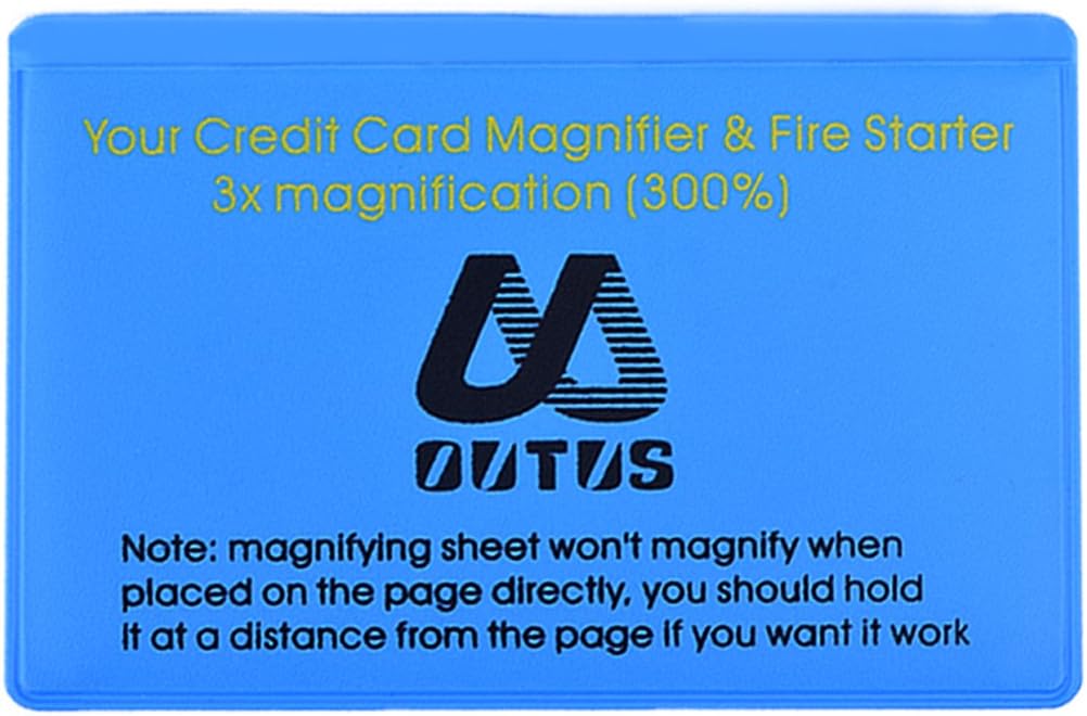 Review: One of these flat and credit card sized magnifiers is a must-have shopping companion at the supermarket when trying to read those tiny letters on a can or a pack of something. Even with a 20/20 vision that can be a challenge.They are also helpful for reading small print on CD booklets and similar. I even use one at the computer when there is something on the screen that I can’t quite make out. It’s faster and easier than using a software application. I do have reading glasses but they are sometimes not within reach.Each magnifier has a soft plastic pocket for protection, and on delivery they were all placed inside a small black cloth pouch. This must be due to the fact that they can also be used as fire starters. To do this you must catch a ray of direct sunlight, and then create a small bright spot, and focus it on the object you want to ignite. I have tested this, and was able to get smoke quite easily.These magnifiers are simply amazing. For everyday use, and also as a tool in your emergency prepping kit. They are obviously not a kids toy, so don’t leave them lying around – and always keep them inside the blue plastic pockets. This will also protect them from scratches.You get four magnifiers with each order – but I was lucky and actually got five!
