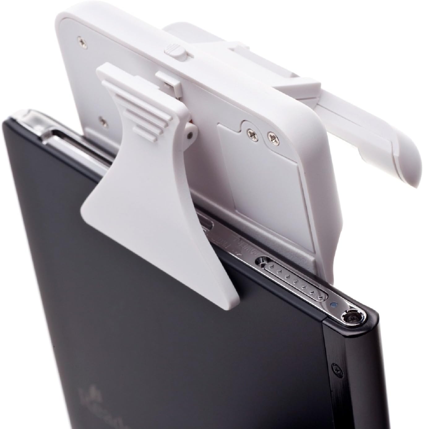Review: Verarbeitung und Laufzeit mit einem Batteriesatz sind OK. Leider leuchtet die Lampe nicht die ganze Seite meines 6″ Sony PRS 600 aus. Der Reader ist ohnehin im Halbdunkel nicht mehr zu benutzen, so dass, wenn die Lampe oben angebracht wird, nur ca 2/3 der Seite lesbar ist. Stellt man sich die Lampe aber auf die Brust kann man wunderbar lesen. Meine Frau kann endlich ruhig schlafen und behauptet, dies sei die beste Anschaffung seit geraumer Zeit ;-))