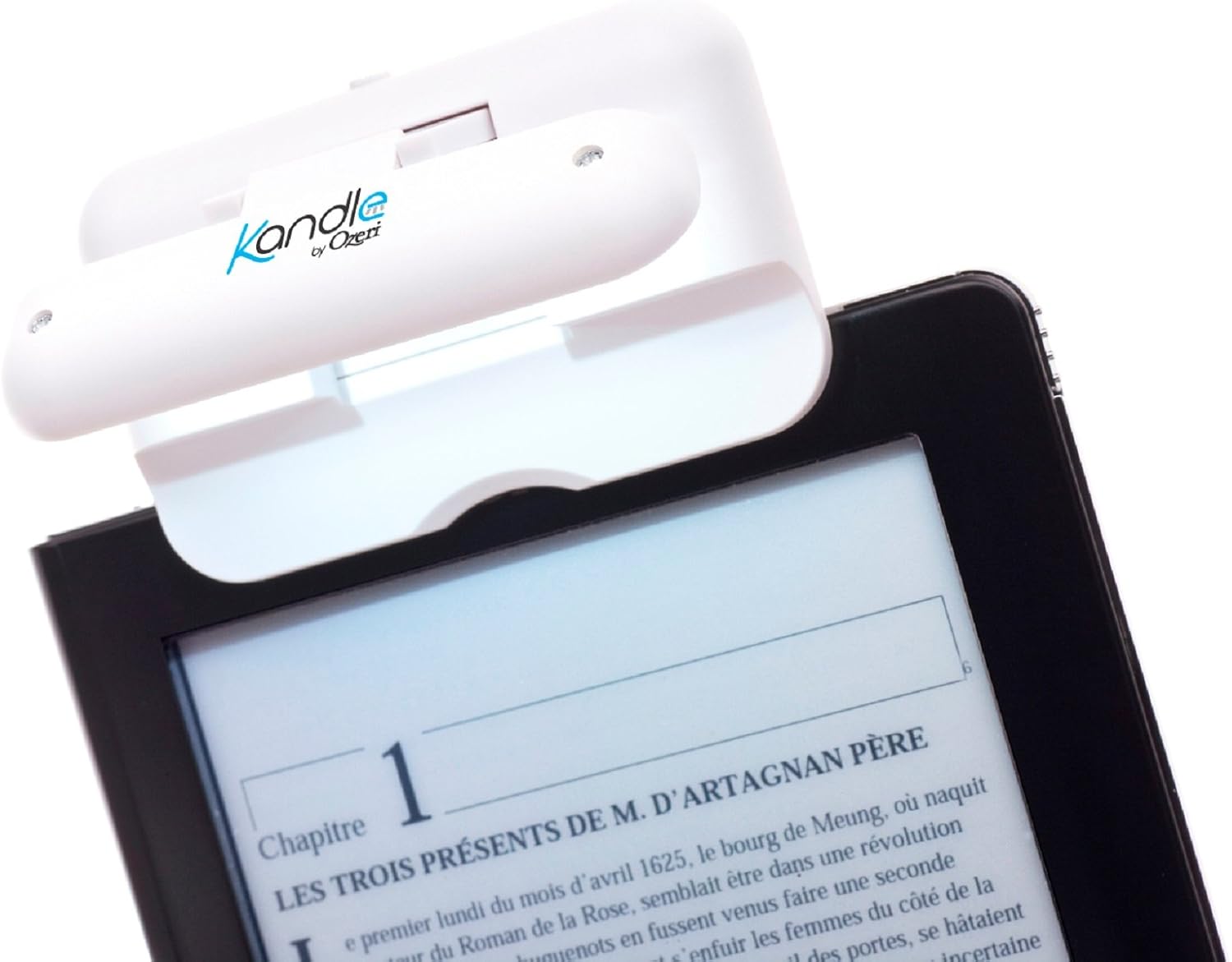 Review: Kandle by Ozeri LED Book Light in White — Designed for the Amazon Kindle (1st and latest generation), Sony Reader and other eBook readers.I received my Kandle by Ozeri LED Book Light and am very surprised by how well made, functional and well thought out this product is.Firstly, service from Ozeri was very prompt, and the book light was delivered very quickly and well packaged.It comes with 2 x Lithium batteries already installed, as well as 2 x spare batteries and a screwdriver to install new batteries when needed. The box also contains a small velvet carry pouch where you can store and carry the light when not in use.The book light itself is very compact, and the light folds into a Pager size unit. It clips onto the Kindle with a large padded clip (similar to a clipboard clip), which feels quite firm and holds on securely when I’m reading.The best thing about this product is the light that is produced. It is very bright (with 2 x LED lights) and lights up the whole of my Kindle 2 with an even white light. There are no bright and dark spots as I’ve had with other book lights.I am very pleased with this product, and the small design features that make this a very good booklight to use not only with my Kindle but hard back books as well.*************UPDATE************** 6 Months on 9/1/2012I’ve now used this product almost daily for six months now. Haven’t had to change the battery and the light produced is still excellent and clip still firmly holding light in place (this light is now kept permanently on my Kindle for night time reading). This is one of the best book lights I’ve ever used. Great product.