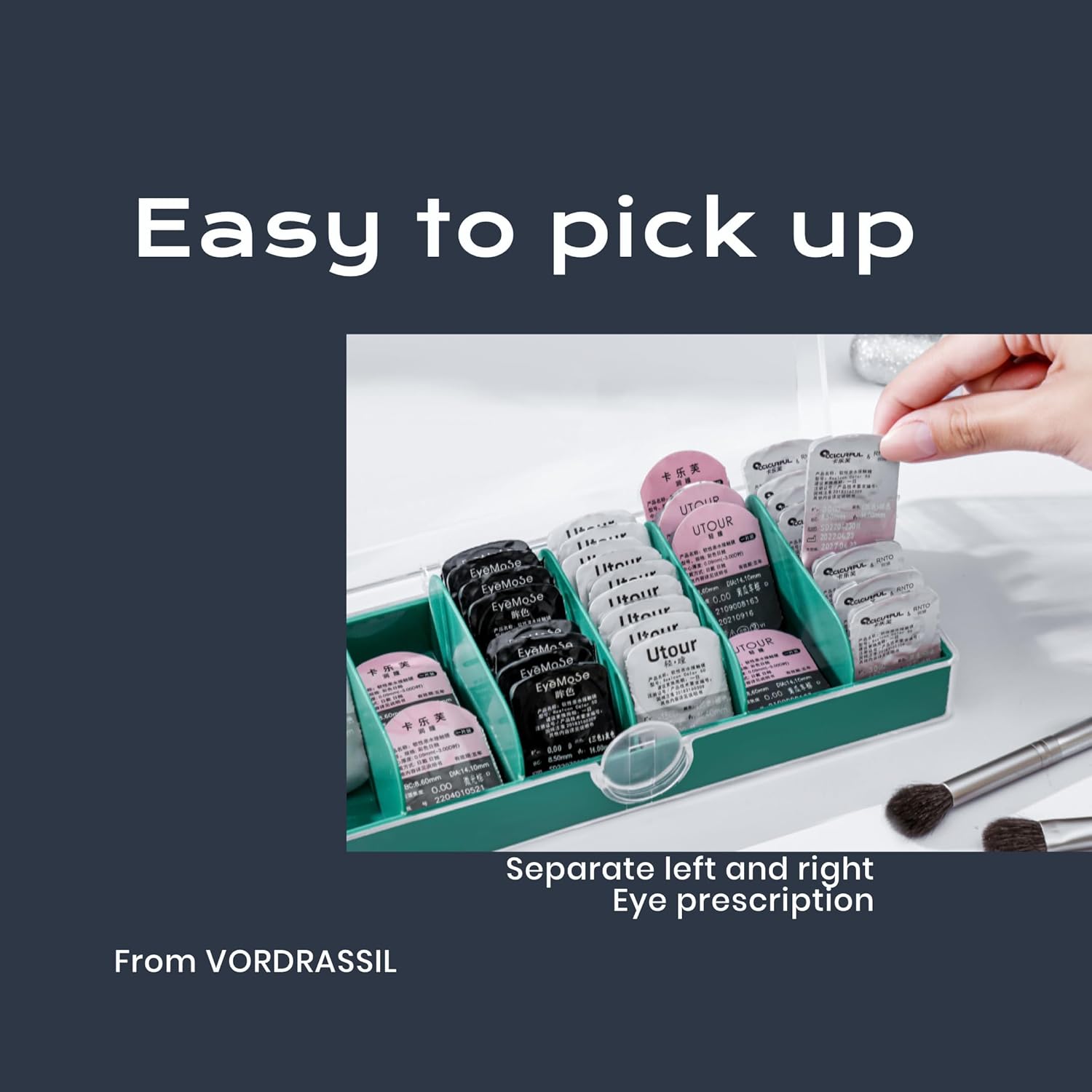 Review: It does nto fit my contact lenses well. I cannot close the box. I tried putting less lenses and it is the same thing. The idea is a great one had it worked. However, it is made for a different type of contact lenses.The box is easy to open and close. the compartments can fit a lot of contacts. It is clear at the top, you you can see clearly, especially if you wear different prescription per eye. As I said, it would have been great if it worked.I still use it and plan to do so until I find something better. I would however not buy again and I do not recommend it