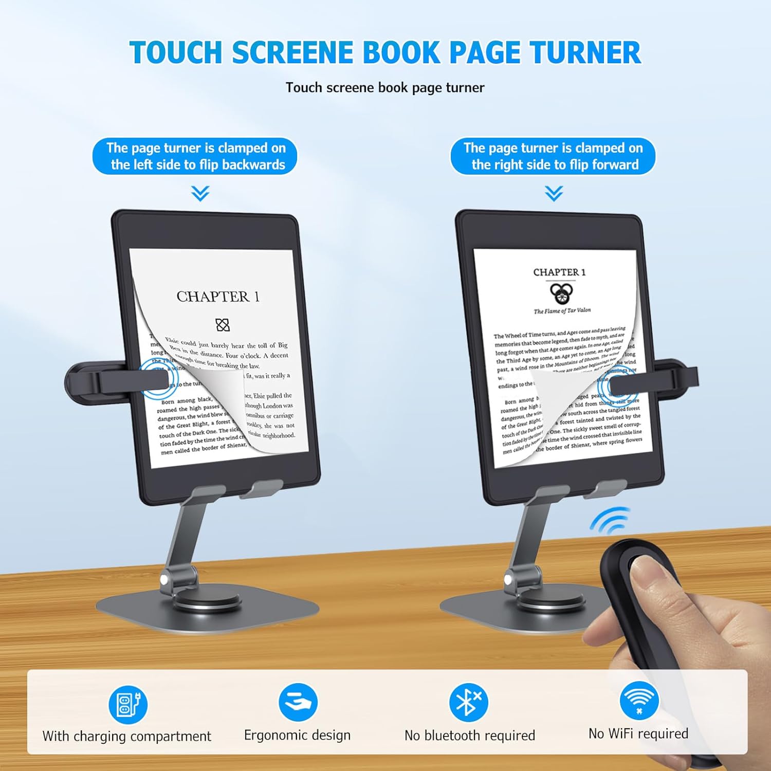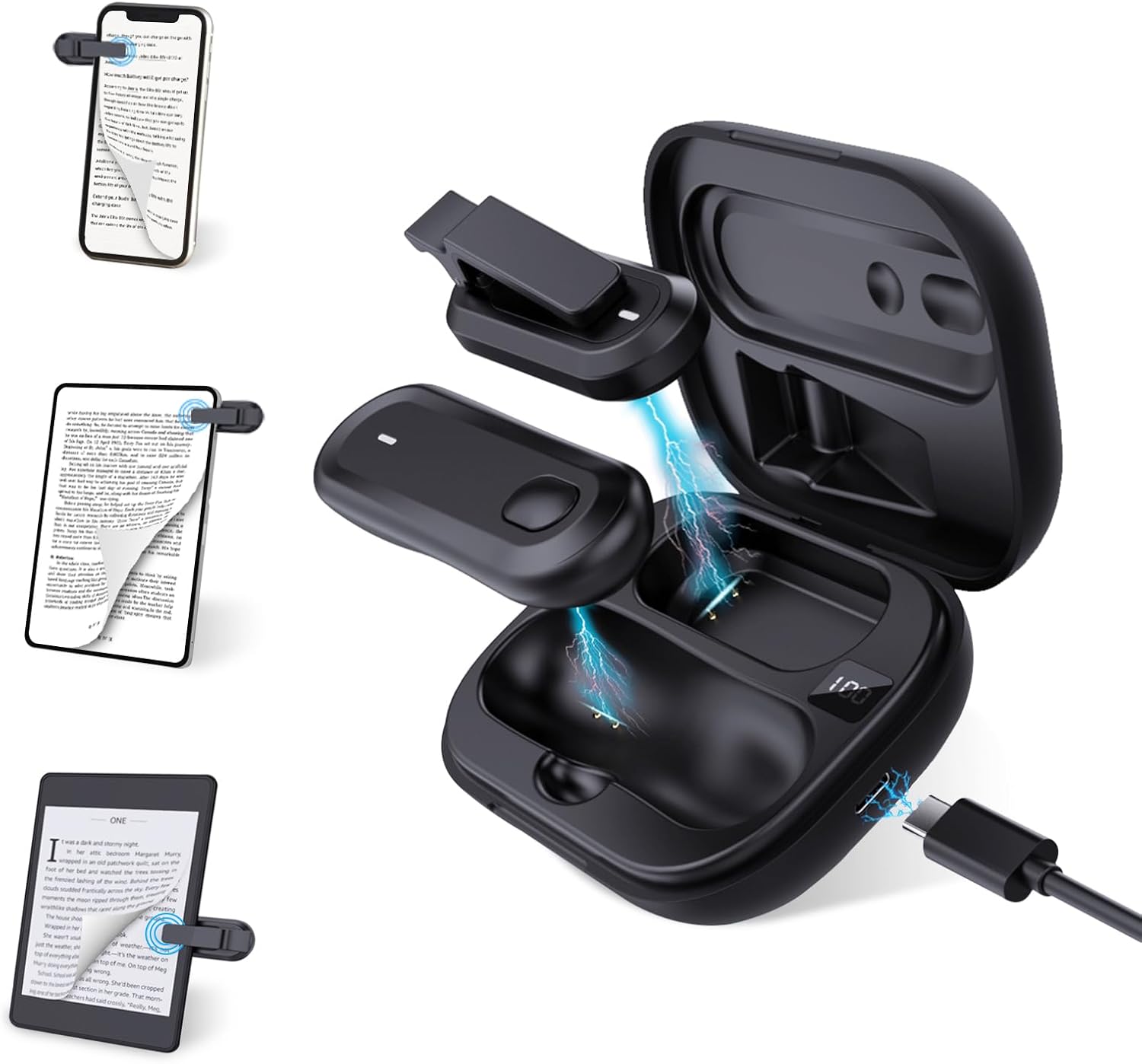 Review: Anyone who loves to read in bed with their Kindle knows the struggle: finding a comfortable position where you can easily reach the screen to turn the page. With my Kindle Paperwhite, I’d often find myself contorting my arm or shifting uncomfortably just to tap the screen. Enter this electronic page turner, and my nighttime reading has been transformed.The device comes in three parts: the page turner itself, a small remote button, and a charging case. The page turner attaches discreetly to the side of your Kindle, and the remote can be held comfortably in either hand. You do have to position properly to have contact on the screen but not obscuring the words on the page.This electronic page turner has significantly enhanced my nighttime reading experience. It’s a small investment that delivers big on comfort and convenience. If you’re a Kindle reader who struggles with page turning in bed, I highly recommend giving this a try.