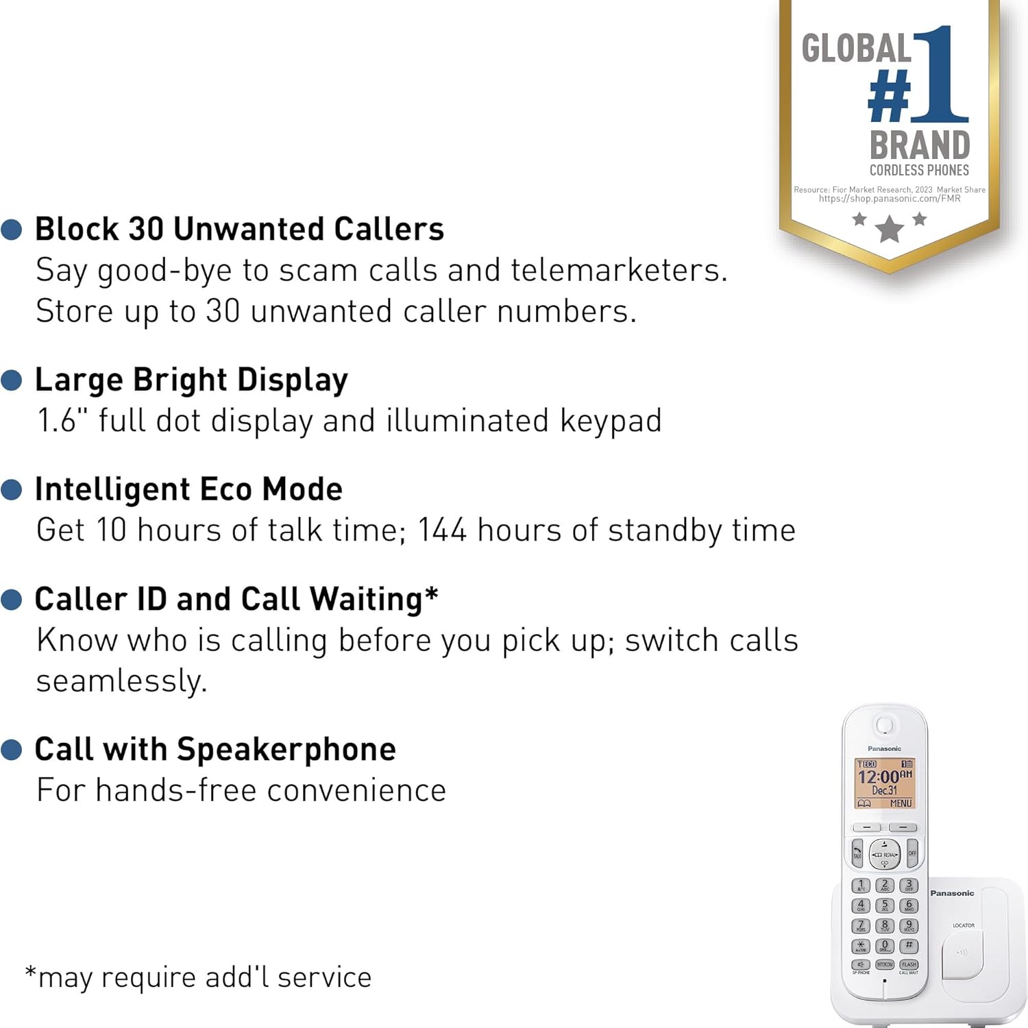 B0DV1Z176C, Panasonic KX-TGC200 cordless phone is a reliable landline phone with features that make everyday life so much easier. The large 1.6″ amber backlit handset display offers exceptional readability, even in low light, making nighttime calling effortless. Its clear, illuminated screen lets you seamlessly navigate menus, dial numbers, and view caller ID with ease. Additionally, the Call Block feature allows you to permanently block up to 30 unwanted numbers, giving you greater control over your calls and enhancing your peace of mind. Enjoy extended usage with up to 10 hours of talk time and…, 4.5,