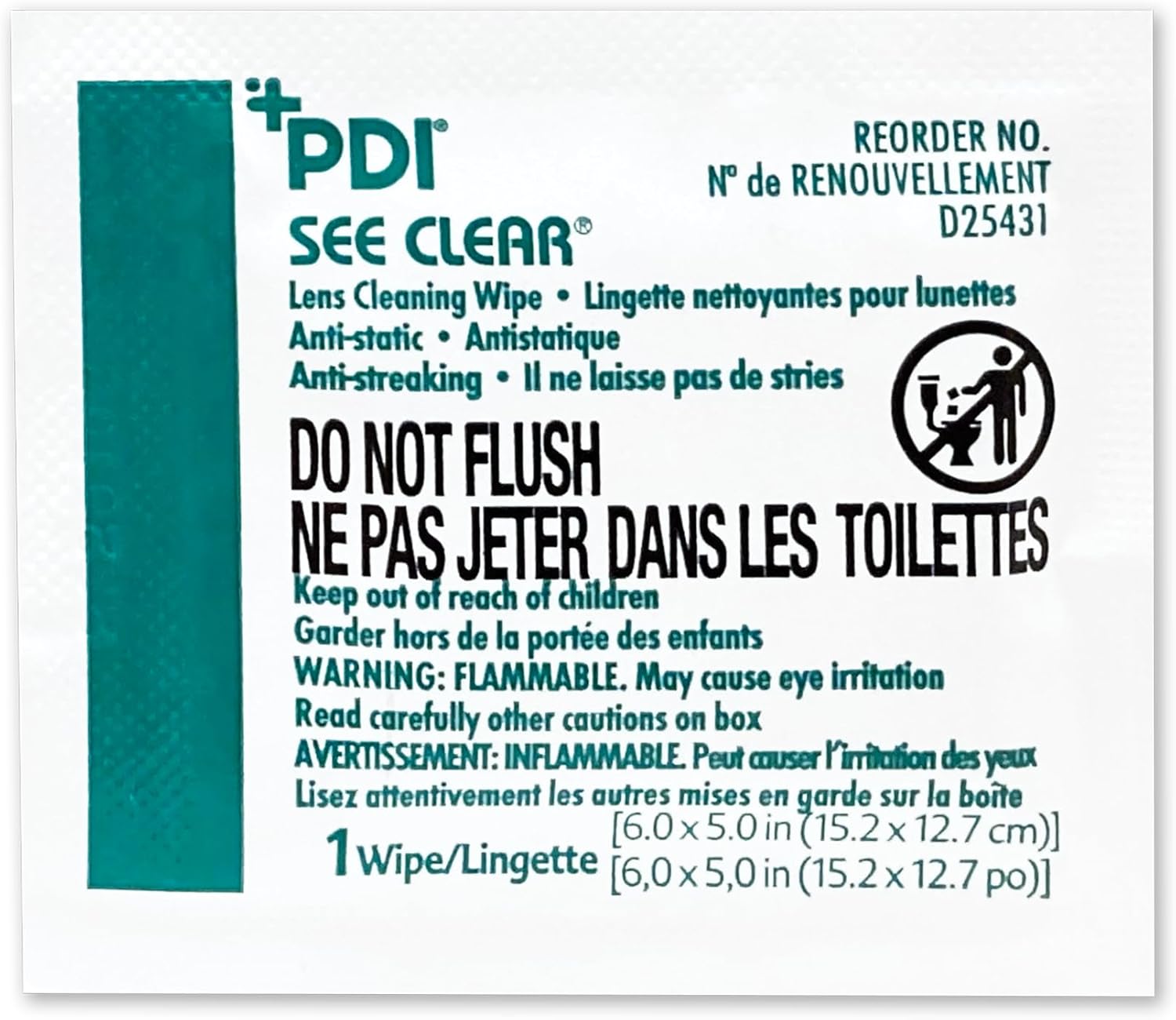 B004YTYTFK, See Clear Lens Cleaning Wipes are individually wrapped, disposable wipes designed to safely and effectively clean a variety of eyewear. Compatible with glass and polycarbonate lenses, these wipes are ideal for safety glasses, goggles, loupes, and everyday eyeglasses—even those with anti-reflective, UV. Each pre-moistened wipe features a fast-drying, anti-static, and anti-streaking formula that lifts smudges, dust, and debris without scratching delicate surfaces.