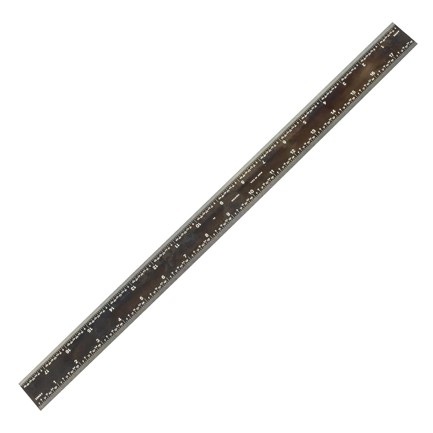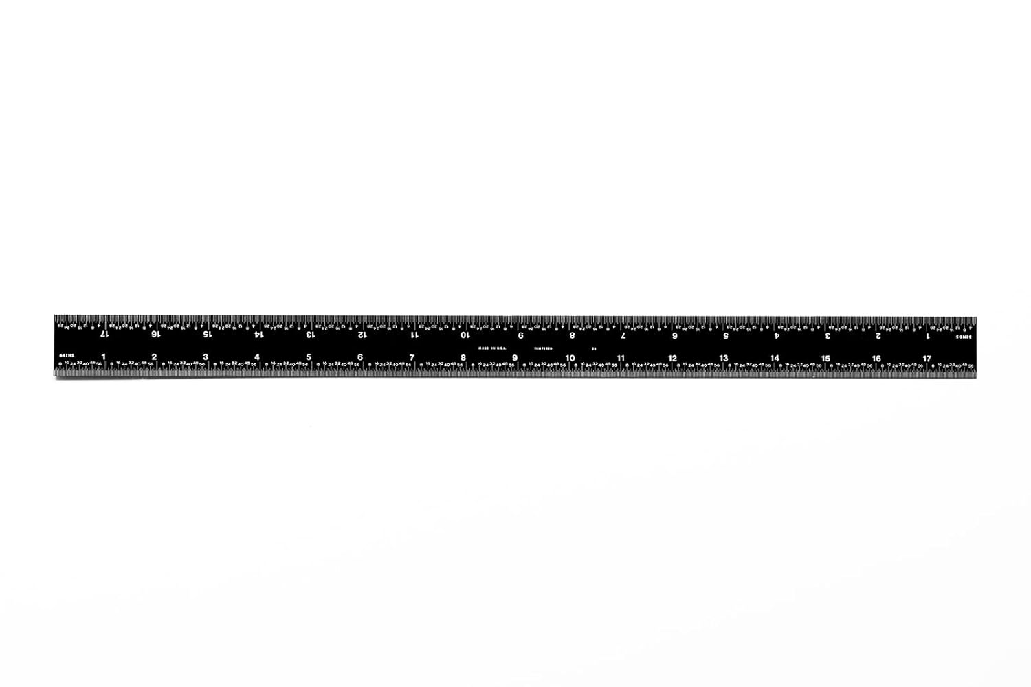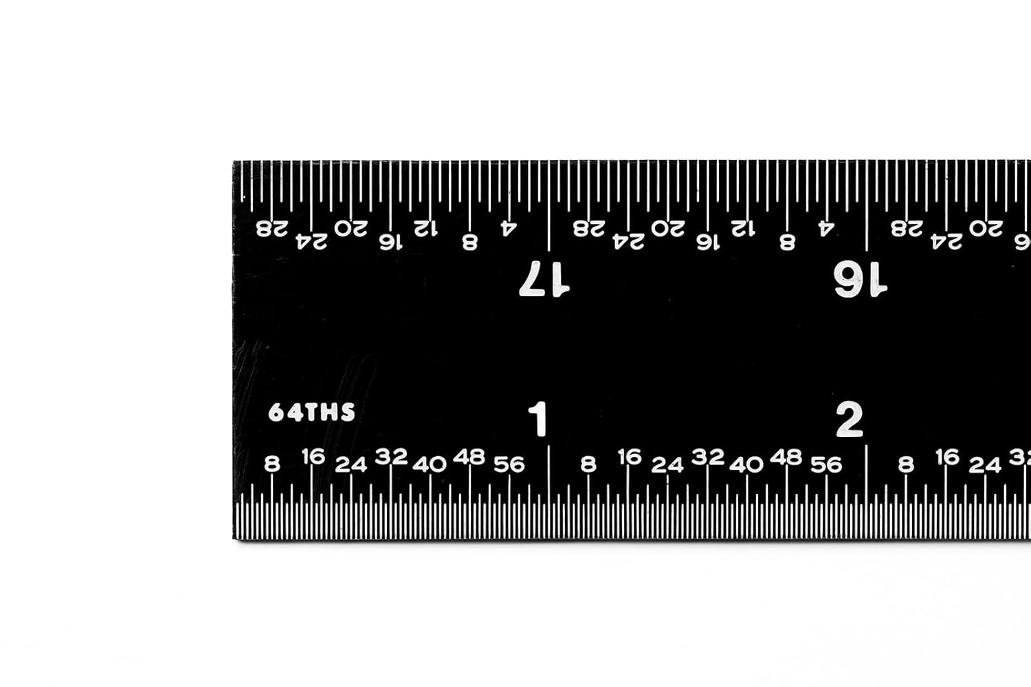 Review: I like the idea of this ruler but there are a few things that would make it better.I really like the sharp contrast of the white letters, numbers and lines against the black color of the ruler. It makes it incredibly easy to see and read.The fact that it has different units of measurement on each side is another efficient touch.I’m worried about the finish on this ruler. It is easy to put fingerprints on it and also is very prone to getting light scratches on it. Over time im worried how much the black finish will degrade over time and indirectly reduce the contrast of the white on black.Additionally, the edges on my particular ruler are very sharp. I can feel it on my fingertips and I worry that it would cut my skin open if I wasn’t careful. It would be nice if it was just slightly sanded down a bit to address this.