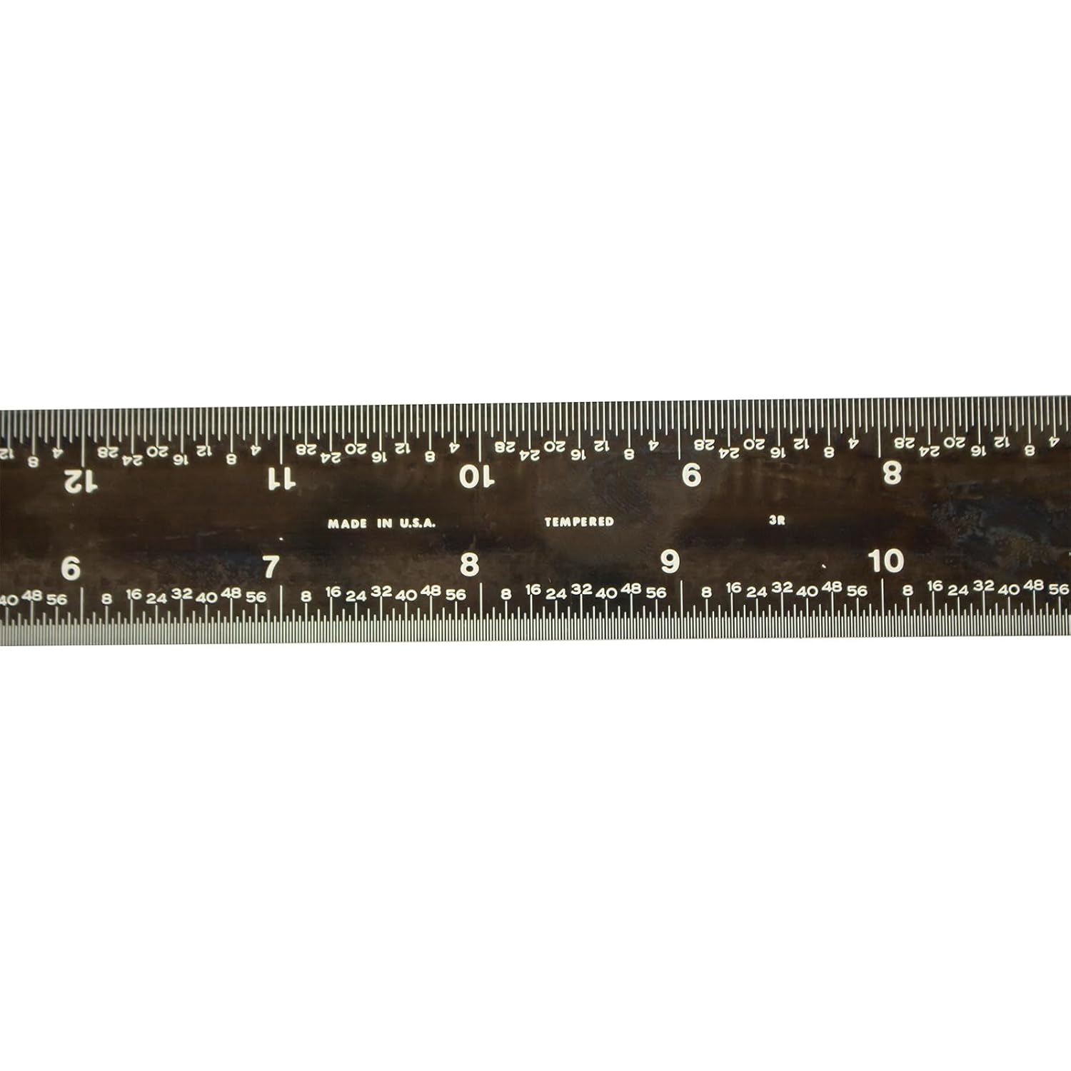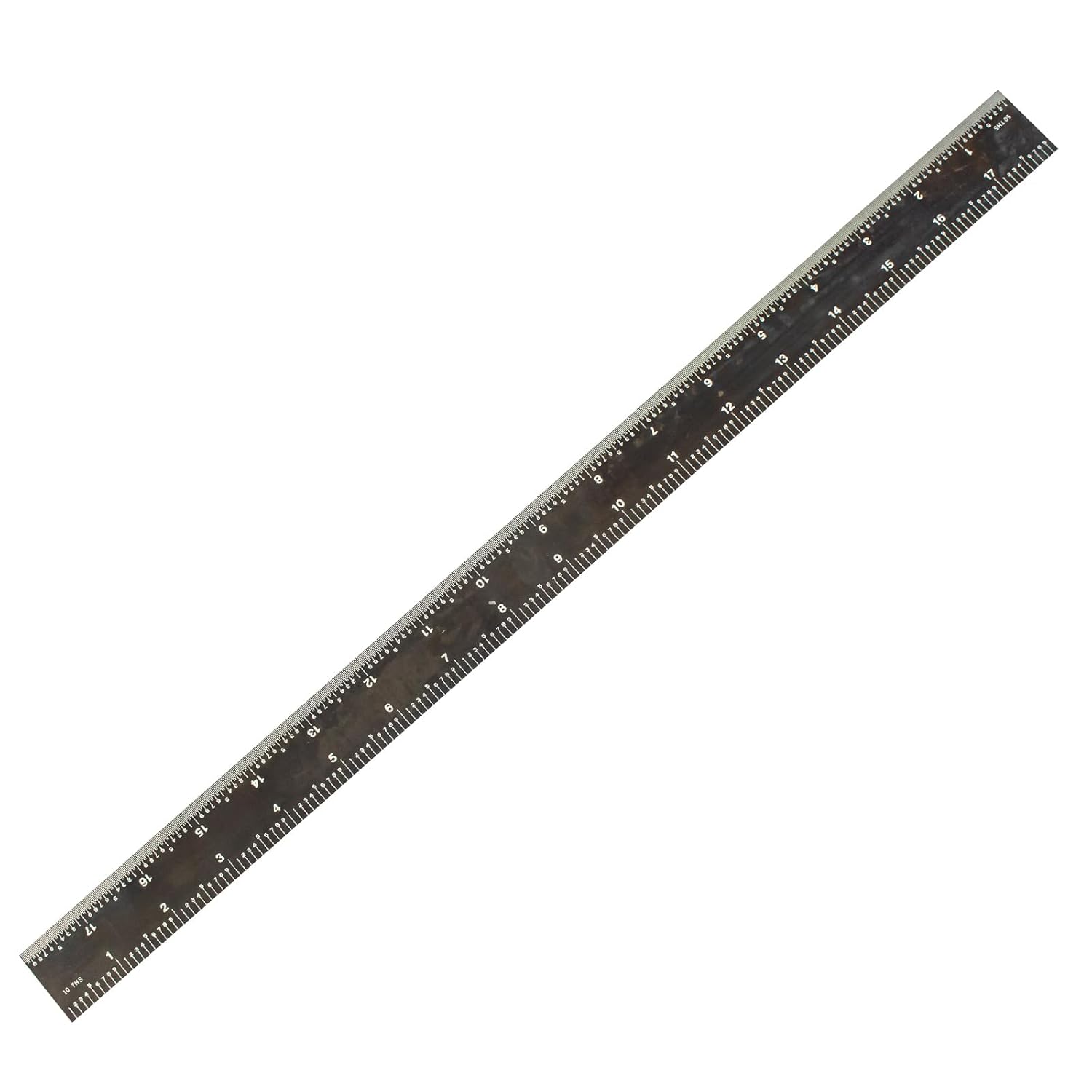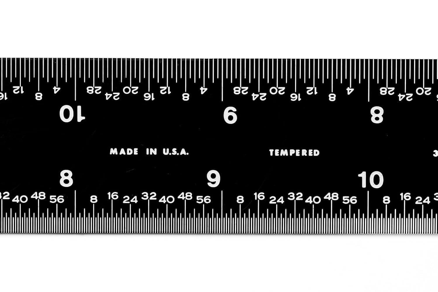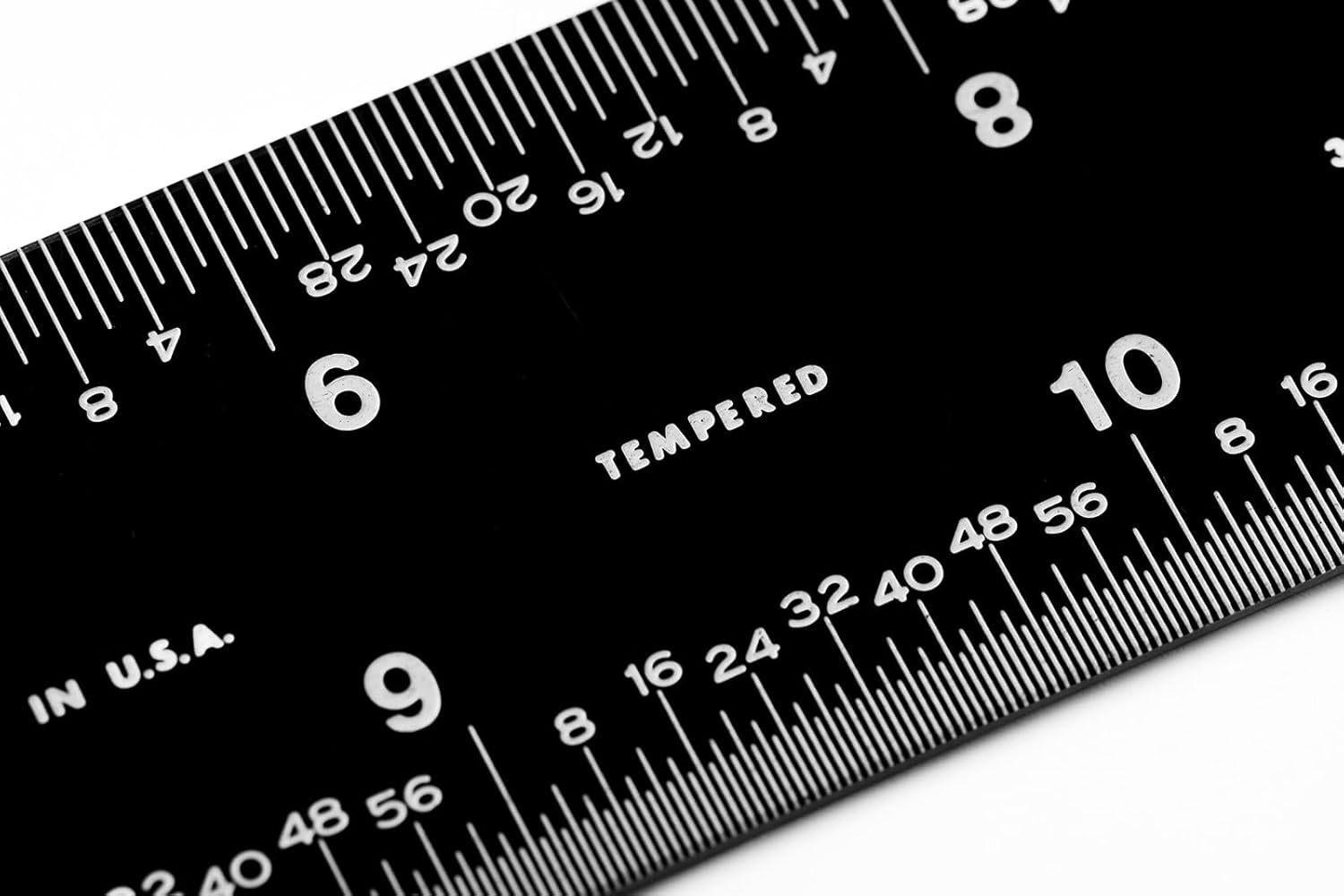 Review: I like the idea of this ruler but there are a few things that would make it better.I really like the sharp contrast of the white letters, numbers and lines against the black color of the ruler. It makes it incredibly easy to see and read.The fact that it has different units of measurement on each side is another efficient touch.I’m worried about the finish on this ruler. It is easy to put fingerprints on it and also is very prone to getting light scratches on it. Over time im worried how much the black finish will degrade over time and indirectly reduce the contrast of the white on black.Additionally, the edges on my particular ruler are very sharp. I can feel it on my fingertips and I worry that it would cut my skin open if I wasn’t careful. It would be nice if it was just slightly sanded down a bit to address this.