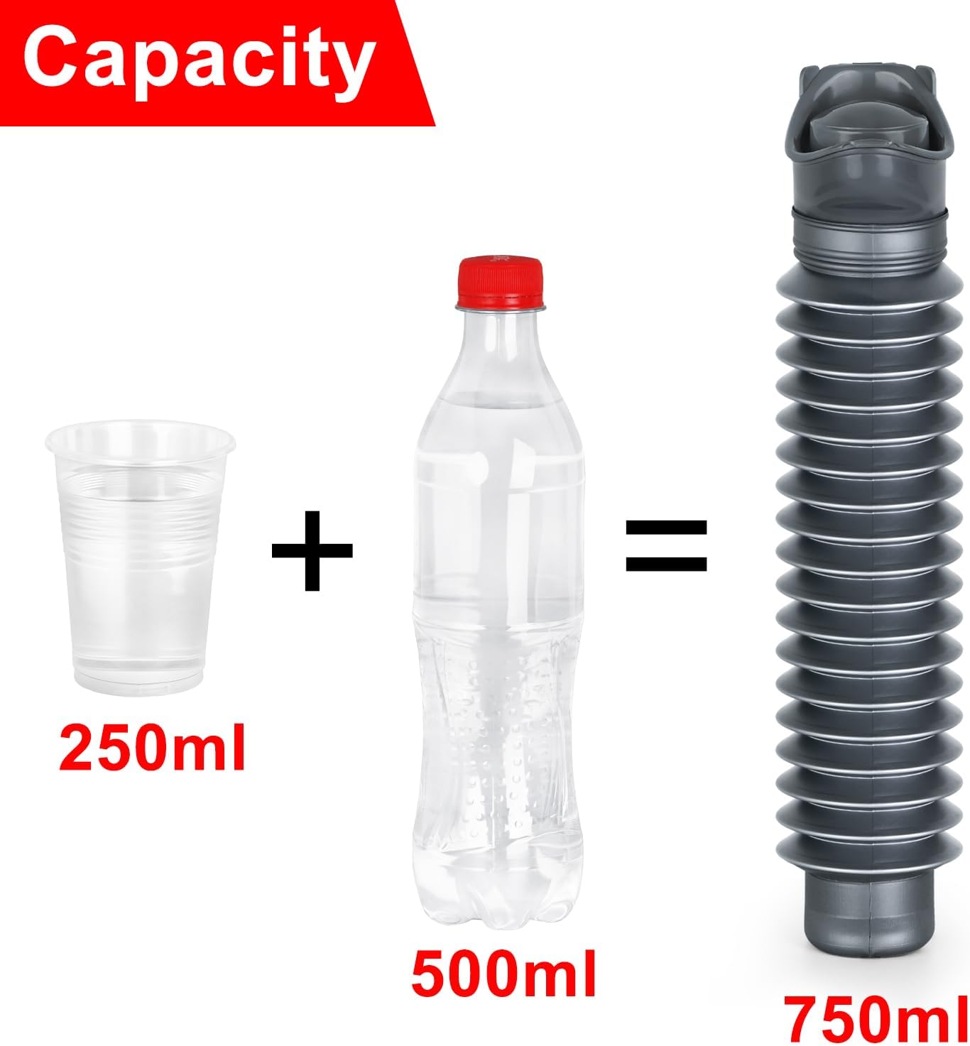 Portable travel urinal:Gray and black color offers better privary,making the ultimate travel companion with our portable urinals for men and women.Compact at 6.77″,extendable to 13″,and lightweight at 2.22 oz,it fits discreetly in bags or under car seats