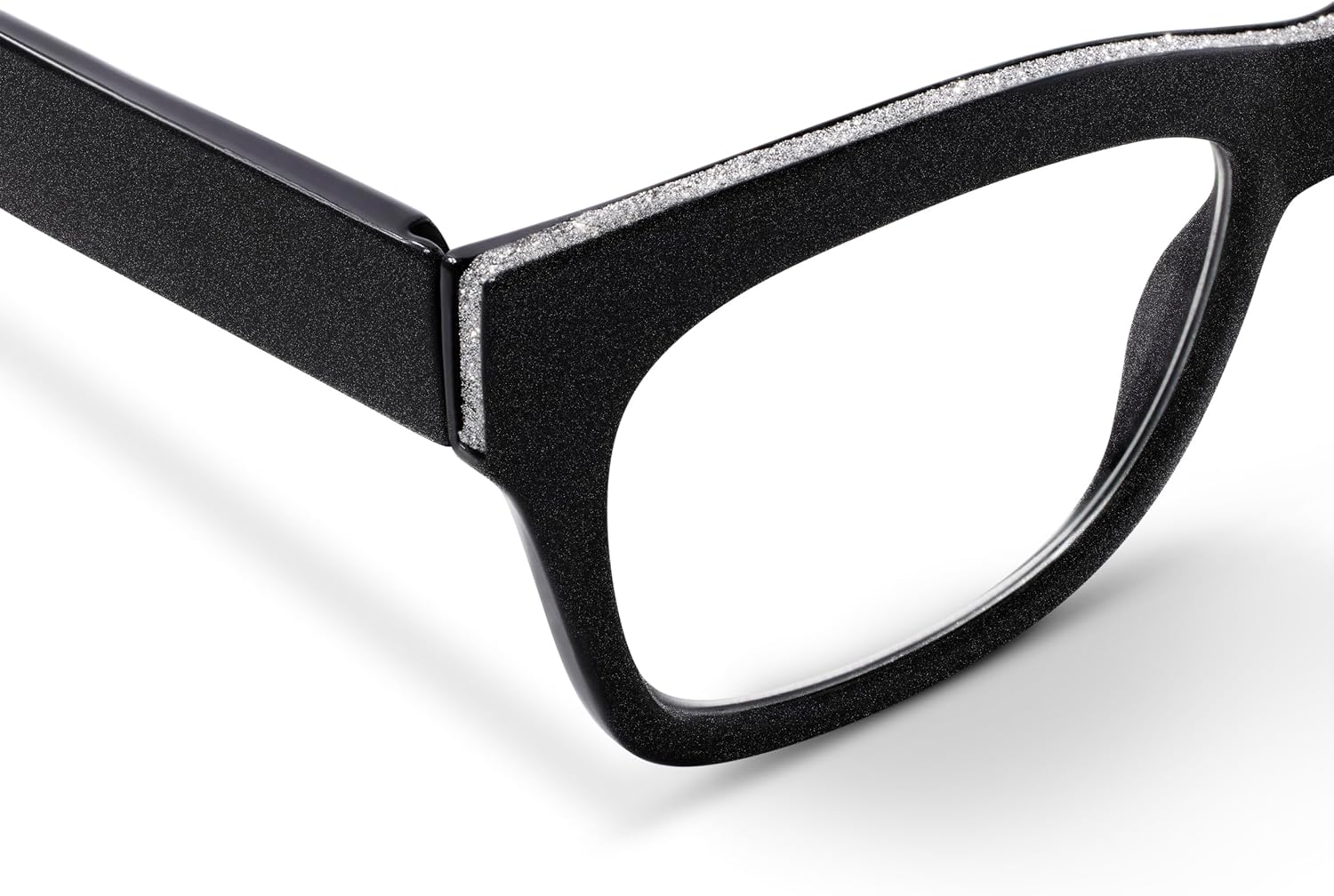 Review: These are so light, but not in a good way…but in the absolutely cheapest way possible. I bought cheap bifocals at the drug store that are 100% better than these. These lenses & frames are so light that they don’t even fit or stay on your face properly. I don’t have money for things like this & I kept them because I was desperate because of covid (not a lot of going out to shop these days) but I regret it every day. Plus these sparkles on the top layer aren’t really shown on their page on Amazon, but beware…the sparkles are there and they fall off and leave big chunks of plastic without anything on them. I’m so upset with myself for giving them too long of a chance so I that I then couldn’t return them. I’d like very much to get my money back.