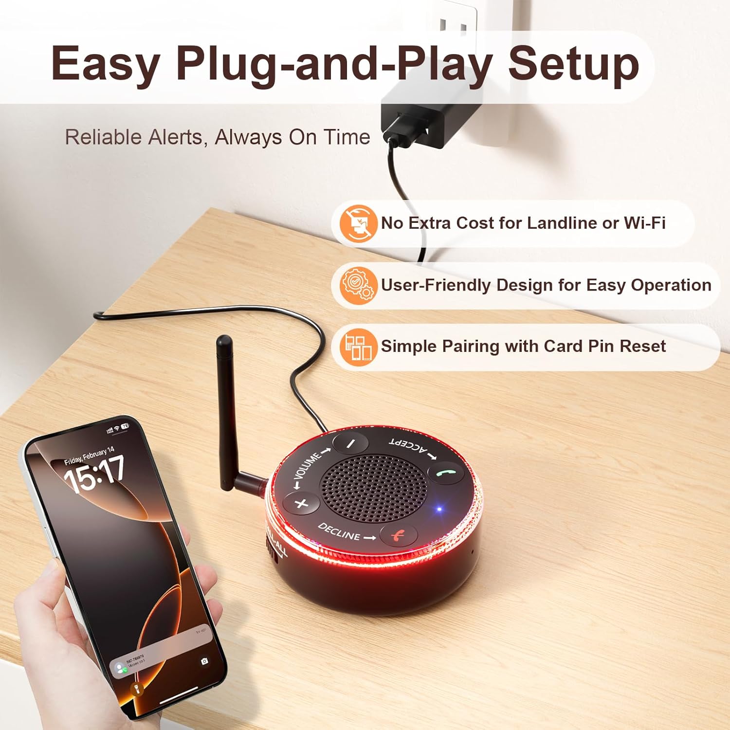 Review: This is a great device to enhance the ringer on the phone allowing senior citizens to hear the sound better.The Phone Ringer Amplifier connects directly to phone calls via Bluetooth, so that you can answer phone calls even if your cell phone isn’t close by.Setting the amplifier up is very simple. adjusting the settings is easy, the device is very user friendly, especially for senior citizens. so seniors will find this very easy to work with.This is a great option for those looking to help there elderly parents or grand parents.Great add-on, very good value for the money,