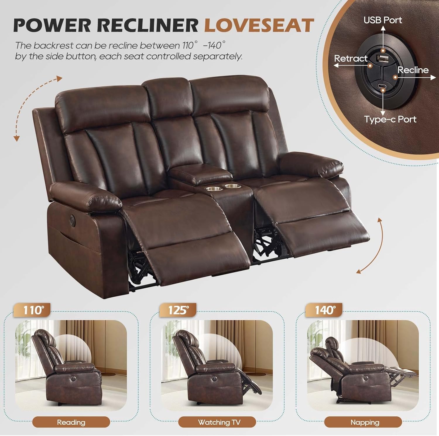 Ultimate Comfort: The back and seat cushions of this power loveseat recliner sofa are filled with high-density soft foam, which will not deform after long-term use, and the built-in springs provide you with the best support and bring you a comfortable experience