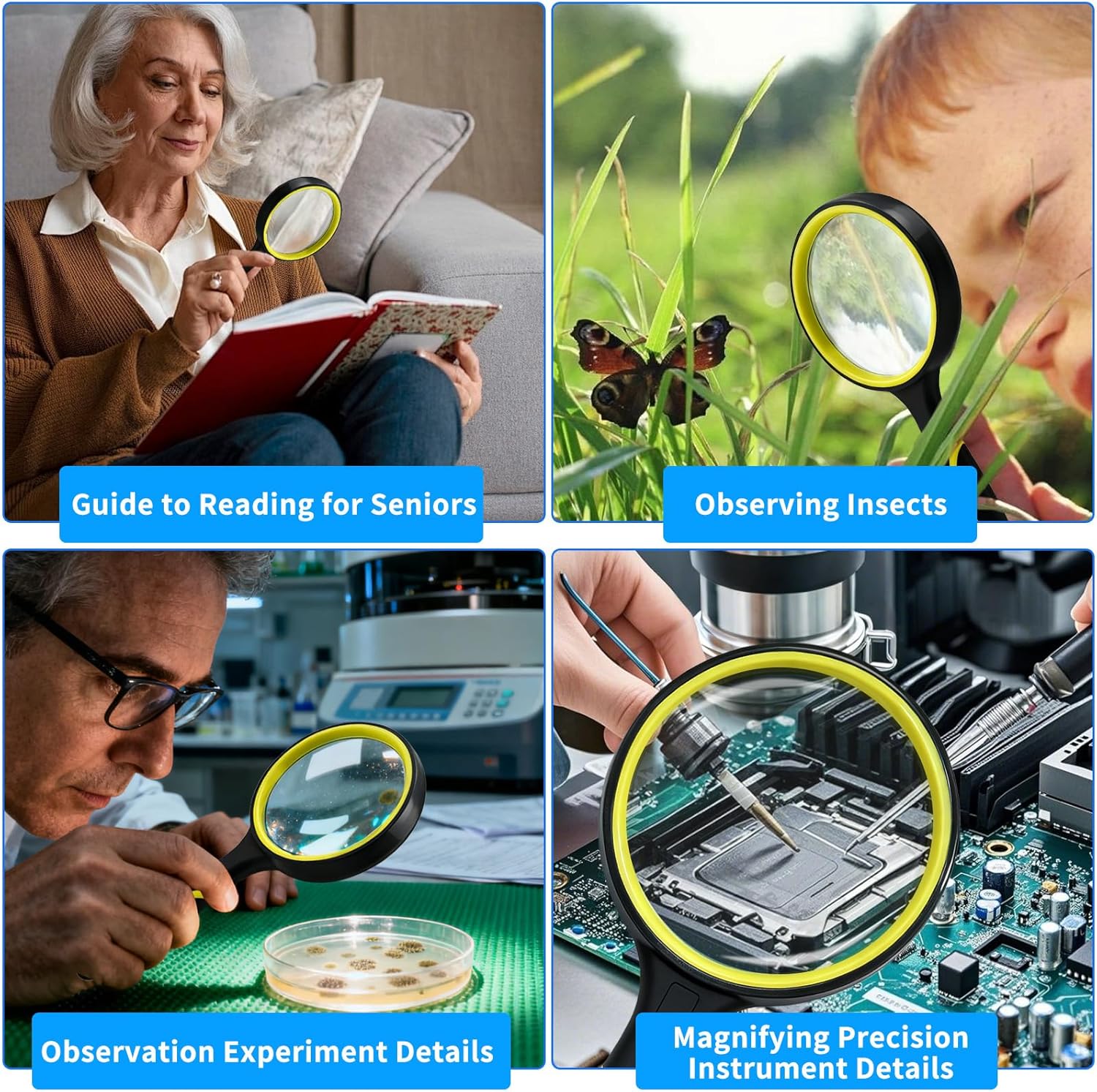 Review: Is it me or is print getting smaller? Shrinkflation seems to have transformed ordinary product labels into no kidding “fine print”.Enter the magnifying glass, everyone’s new favorite accessory. My first impression when picking it up was “dang this has some weight to it”. It is a nice size, not too big and not too small.The product came in a box with very little information on it. I had to go back to the online description to find out it magnifies 10x. The magnifying glass part is held in place by a plastic ring and it has a rubber coating around the glass and handle. It fits nicely in my hand, but I would have like the handle to be a little longer.It’s easy to use. You don’t have to keep moving it to get the print in focus. The lens itself is a good size and the 10x magnification gets the job done. Things I was squinting to try to read were like the bigger rows on the old eye chart. I found it easy to move along the smaller print to keep reading it. It does have a little weight to it. I didn’t find that to be an issue but consider that if you are buying this for a small child or a person with grip challenges.Overall, I’d recommend this magnifying glass for those who want to be able to read the fine print.