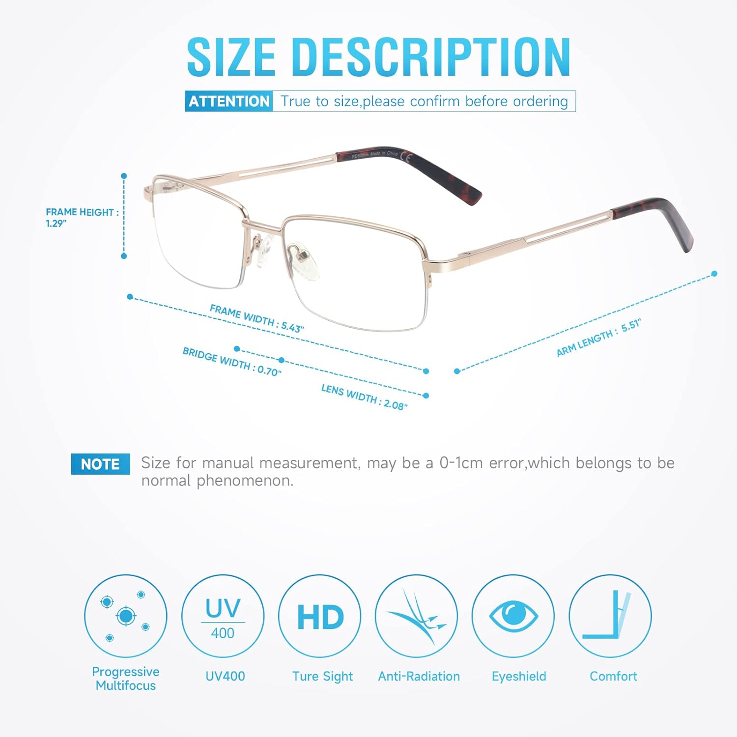 Review: If you haven’t used progressive reading glasses you should. These are as good as any I'[ve used at a reasonable price. They are pretty particular so you need to get used to raising your head up and down to get into the right focal length. But once you do, focusing on a computer monitor is a great experience. I would prefer a glass that simply had a greater depth of field. But they are hard to come by and will not be at this price range.