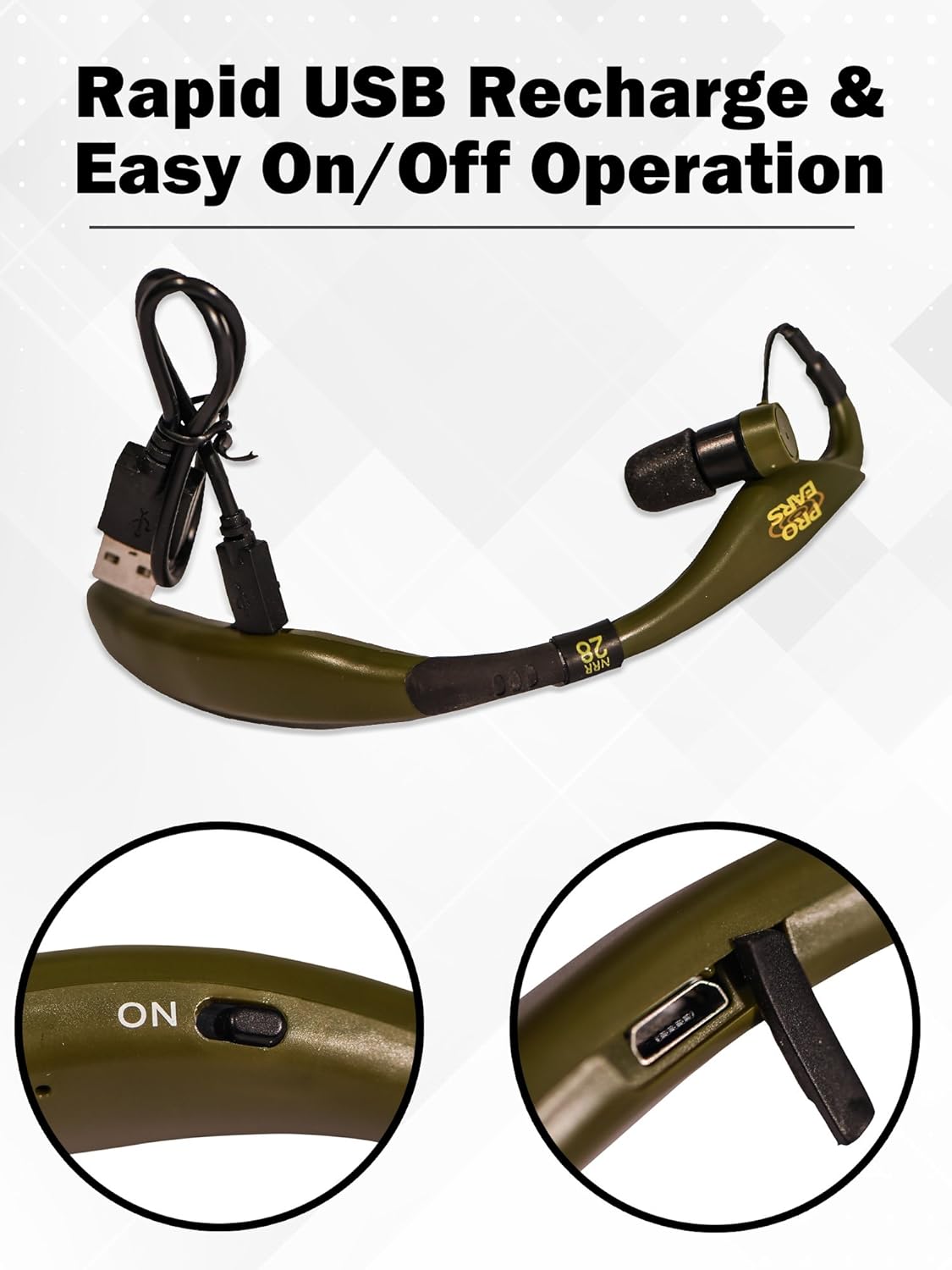 Review: The Pro Ears Stealth 28 are exactly what I was hoping for in hearing protection. They are very lightweight, so I can comfortably wear them all day. The noise reduction rate, NRR, is an impressive 28. The Stealth 28 is conveniently and USB rechargeable and the first recharge lasted about 20 hours. It only took about 1 1/2 hours to completely recharge so once again convenient! Three diffrenized earbuds were provided with the product, which was greatly appreciated and added to my comfort level since I am a relatively small person. My husband liked the larger earbuds that were provided with the product. We both felt that they were soft and comfortable. The new Stealth 28 amplify up to 5xs and has great compression technology to protect the wearer’s hearing. I am very satisfied with my purchase because they work as advertised, were a terrific price point and there is a 1 year warranty. I recommend this product based on my experience.