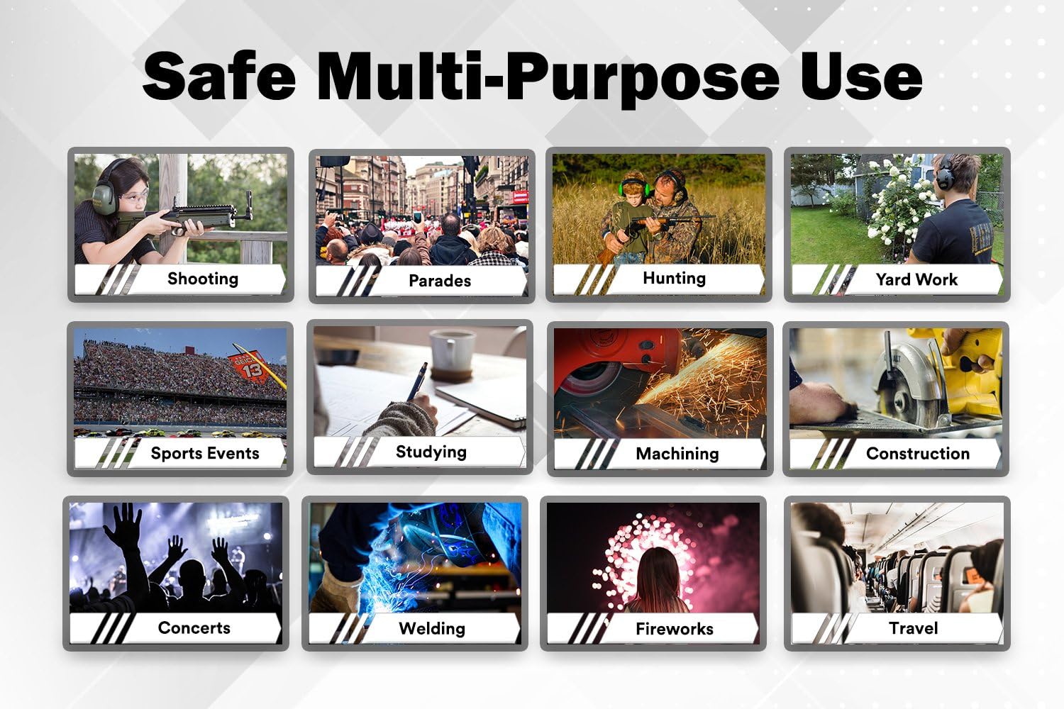 Review: This was a surprising experience wearing electronic hearing protection over passive ones, I was amazed by the background sound quality being amplified to hear better, while brief loud noises (i.e., gunshots at a shooting range, fireworks at a parade, rock music at a concert, etc.) were muffled to safe levels not harming your eardrums.The only concern is the three size earbuds, S, M, & L. While they can be interchangeable with the unit, they don’t have adjustable layers for insertion into the canal like I thought they would. It’s like trying on pants without a belt.Battery life does last well over 3 hours of my day on a full charge, and no signs of weakening battery yet.There is also a set of wind filters to stick on the outside of the ear mics, in case you don’t wish to hear white static interference from outside. I haven’t tried them just yet.Other than that, this hearing protection gear is not all that too expensive (under $100), and it is comfortable resting on your temple behind the ears. B+