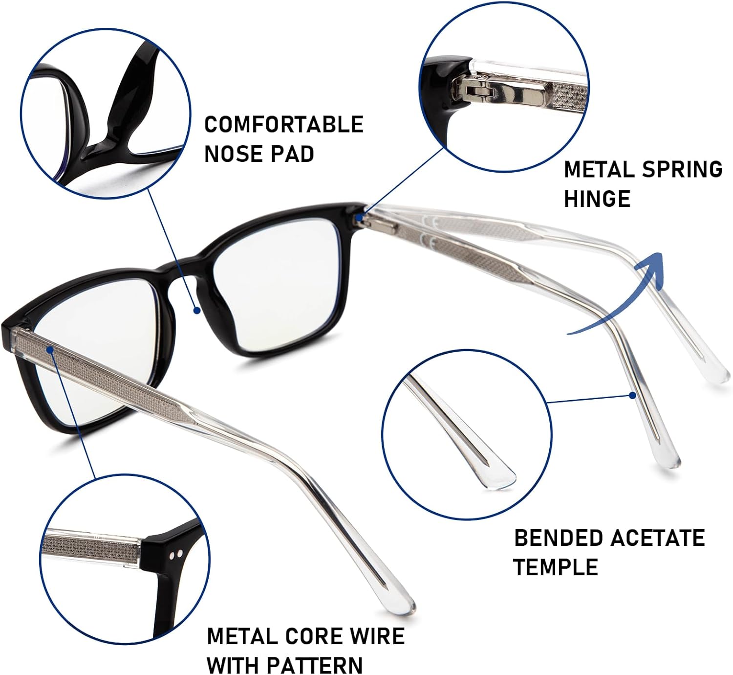 Review: I have been wearing progressive readers for years now. I just lost a pair and was looking for a replacement and found these. In the pictures they look stylish so I thought I would try them. I have to say – they look great in person! They have spring hinges which is nice, I love the gray frame, and most importantly – the optic quality is very good for the price point. They work well and very clear. The frame is slightly larger which personally, I really like. The only thing I will mention is that because they are blue light and UV blocking, they have a very slight tint to them. You only notice when first putting them on; after a minute, you can’t tell. I would not consider this a negative, just wanted to point it out. These seem as durable as most readers but time will tell. Overall, very happy with these and would definitely purchase again.