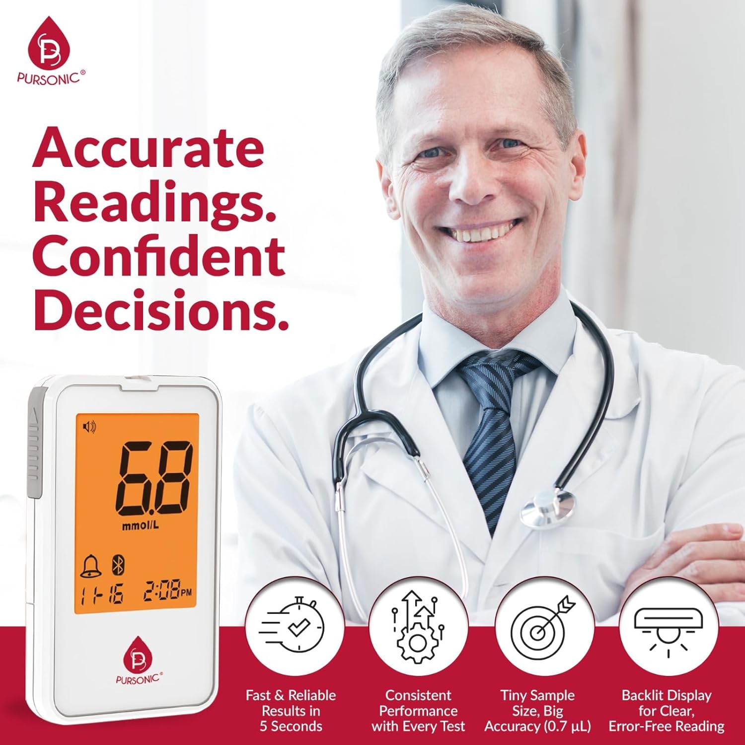 , Health & Household > Health Care > Diabetes Care > Blood Glucose Monitors, #Pursonic #Blood #Glucose #Monitor #Kit #Bluetooth #Fast #5Second #Blood #Sugar #Mo..,