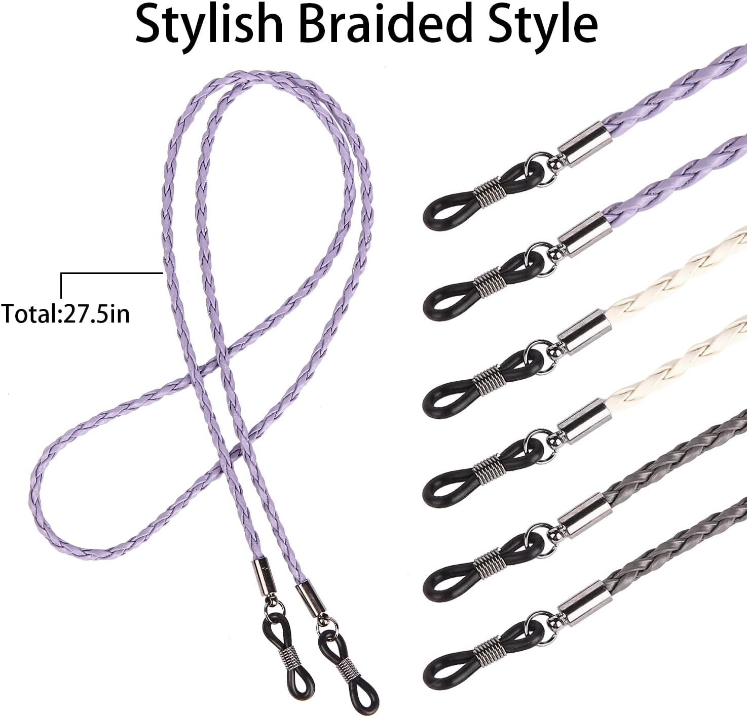 Review: The quality is thereThe braiding makes it stylish5 colors can go with any outfit or have multiple glassesLove the adjustable holders for the arms on the glasses. Most others have just cheap elastic to hold it on, this can adjust once you get them in place its not going anywhere. Feels very secure yet easy to take off if needed.Feels very comfortable on my neck because of the braiding it kind of rolls instead of sticking on my neck.Can’t beat this price for the number that you get, colors, quality