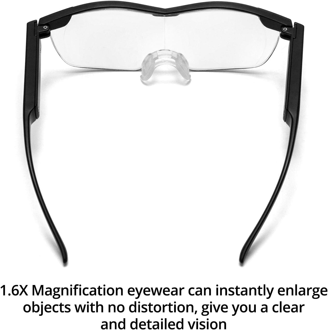 ✔1.6X Magnification: 1.6X Magnification eyewear can instantly enlarge objects with no distortion, give you a clear and detailed vision, allow you reading prescription bottles, small prints, threading a needle etc.
