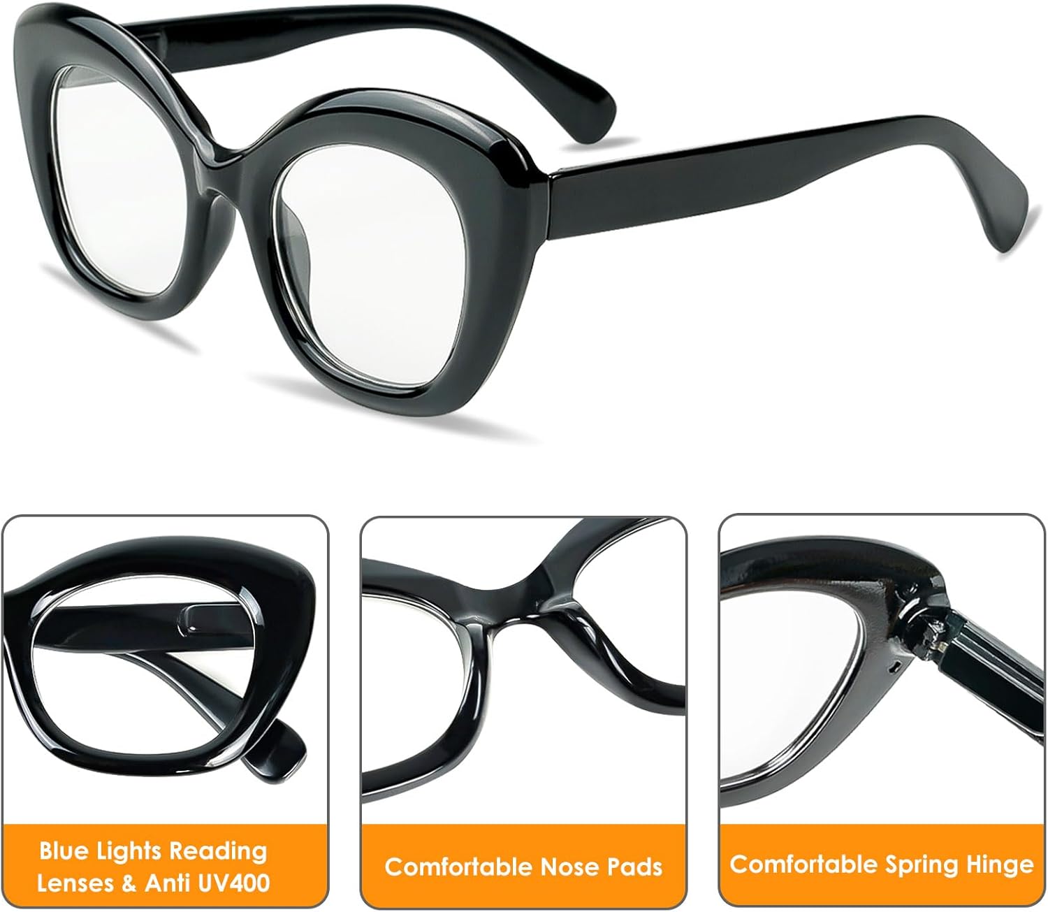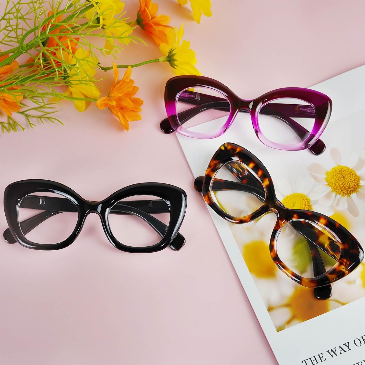 Review: I absolutely love these reading glasses! The cat-eye design is super chic, and I finally feel like I don’t have to look old just because I need reading glasses. With these, I can hop on work video calls and look stylish and put-together—such a confidence boost!The pack of three is a great deal, and I love having different colors to match my mood or outfit. I keep one pair in my office, one in the living room, and one in my bag, so I’m never scrambling to find my glasses.They’re also super comfortable to wear. The spring hinges fit perfectly without pinching, and the nose pads don’t leave marks, even after wearing them for hours. The lenses are clear, and the frames feel sturdy and high-quality.If you want reading glasses that are both fashionable and practical, these are perfect. I get compliments on them all the time, and honestly, they’ve made wearing glasses fun! Highly recommend!