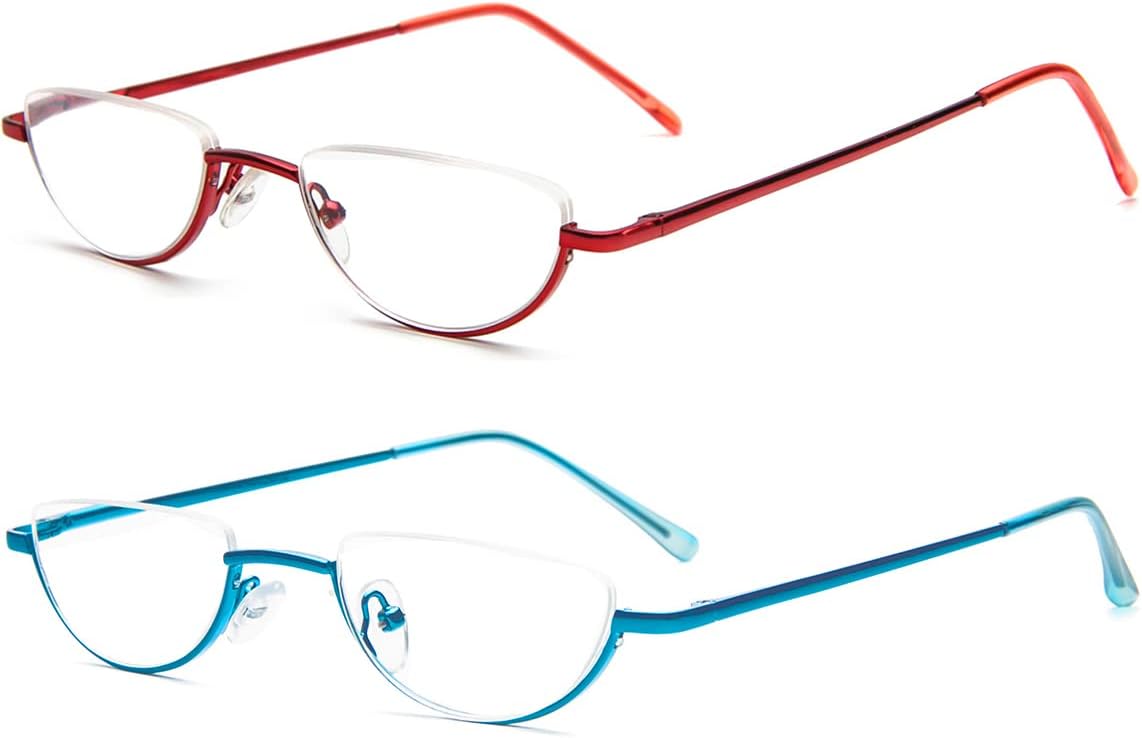 Review: These are my favorite of the half Rim style glasses sold on amazon. They’re a little more sturdy than the plastic ones. They are still lightweight . They have a bit taller lens. They fit my narrow face pretty good although I have to put rubber stoppers behind my ear to keep them from falling off if I bend over. I wish some of these companies would make glasses specifically for women’s smaller faces and head as I cannot get them narrow enough width across the front of my face.