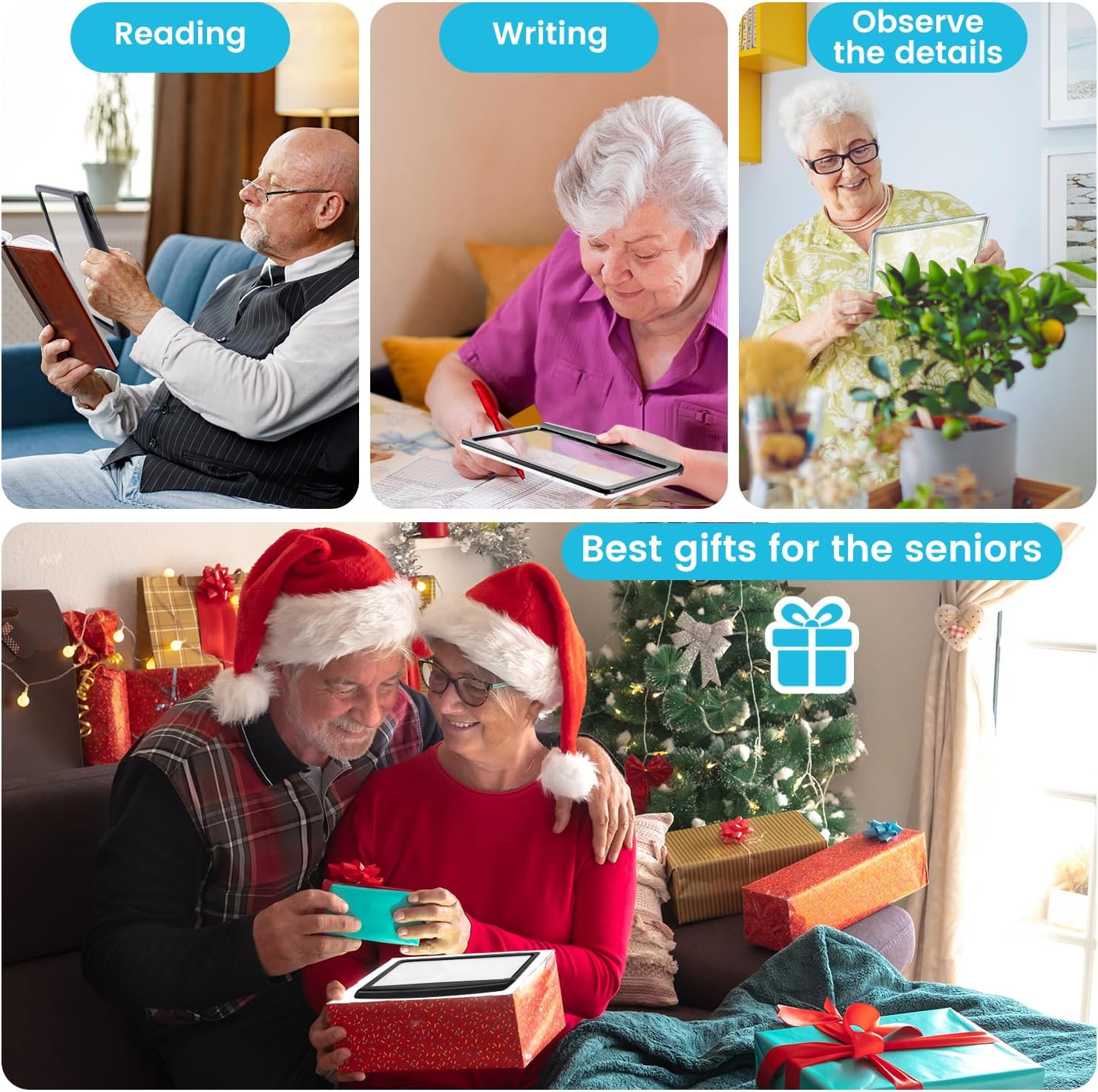 The rectangular lens of the page magnifier (4.33″ x 7.09″) enhances reading by minimizing hand movement, allowing for improved focus on details while reducing eye strain during prolonged use, ultimately ensuring a more comfortable and enjoyable experience.